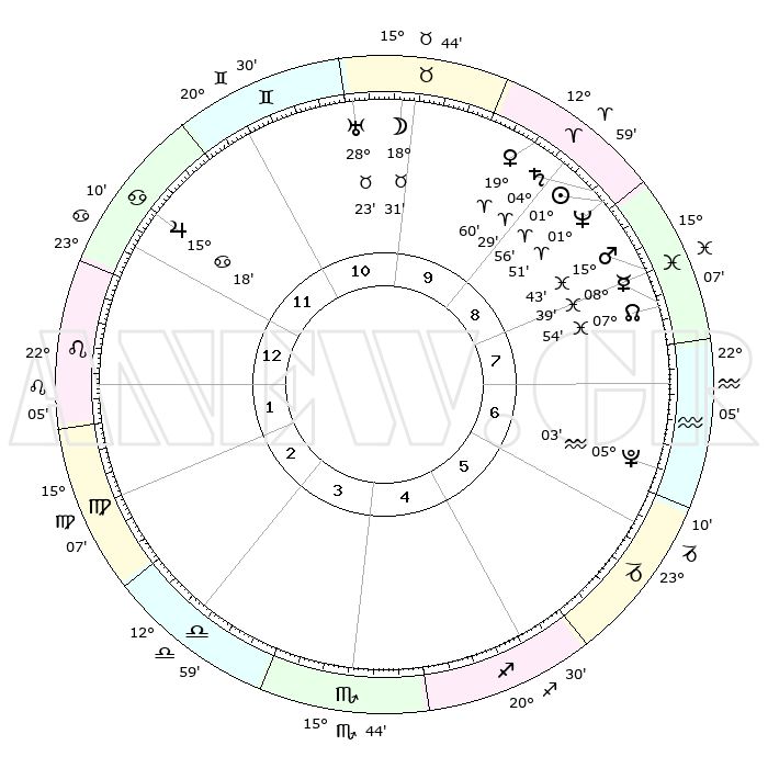 | | ΘΕΣΕΙΣ ΠΛΑΝΗΤΩΝ ΑΣΤΡΟΛΟΓΙΚΟΥ ΧΑΡΤΗ ΤΗΣ ΣΤΙΓΜΗΣ ΑΥΤΗΣ | | | | Πλανήτης | Ζώδιο | Μοίρες | Δεκαήμ. | Σε οίκο | Απόκλιση | | Ακμές των οίκων | | Ηλιος | Κριός | 01°51' | Πρώτο | 9 | 00 N 44 | | 1ος | 00°32' | Λέων | | Σελήνη | Ταύρος | 17°27' | Δεύτερο | 10 | 21 N 43 | | 2ος | 21°37' | Λέων | | Ερμής | Ιχθείς | 08°38' | Πρώτο | 8 | 07 S 47 | | 3ος | 16°44' | Παρθένος | | Αφροδίτη | Κριός | 19°54' | Δεύτερο | 10 | 07 N 02 | | 4ος | 17°50' | Ζυγός | | Αρης | Ιχθείς | 15°40' | Δεύτερο | 8 | 06 S 38 | | 5ος | 23°52' | Σκορπιός | | Δίας | Καρκίνος | 15°18' | Δεύτερο | 12 | 22 N 55 | | 6ος | 29°29' | Τοξότης | | Κρόνος | Κριός | 04°28' | Πρώτο | 9 | 00 S 10 | | 7ος | 00°32' | Υδροχόος | | Ουρανός | Ταύρος | 28°23' | Τρίτο | 11 | 19 N 37 | | 8ος | 21°37' | Υδροχόος | | Ποσειδώνας | Κριός | 01°51' | Πρώτο | 9 | 00 S 28 | | 9ος | 16°44' | Ιχθείς | | Πλούτωνας | Υδροχόος | 05°03' | Πρώτο | 7 | 22 S 48 | | 10ος | 17°50' | Κριός | | Β. Δεσμός | Ιχθείς | 07°54' | Πρώτο | 8 | 08 S 36 | | 11ος | 23°52' | Ταύρος | | Ωροσκόπος | Λέων | 00°32' | Πρώτο | | | 12ος | 29°29' | Δίδυμοι | | Μεσουράνημα | Κριός | 17°50' | Δεύτερο | | | |