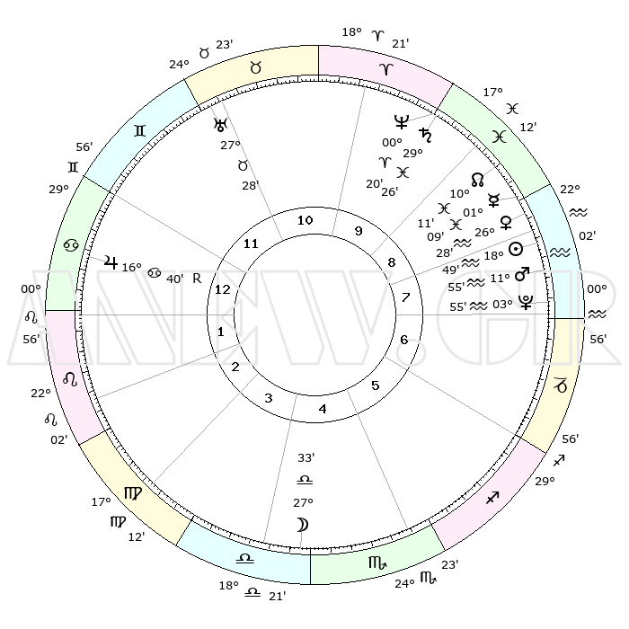 | | ΘΕΣΕΙΣ ΠΛΑΝΗΤΩΝ ΑΣΤΡΟΛΟΓΙΚΟΥ ΧΑΡΤΗ ΤΗΣ ΣΤΙΓΜΗΣ ΑΥΤΗΣ | | | | Πλανήτης | Ζώδιο | Μοίρες | Δεκαήμ. | Σε οίκο | Απόκλιση | | Ακμές των οίκων | | Ηλιος | Υδροχόος | 18°45' | Δεύτερο | 8 | 15 S 12 | | 1ος | 10°06' | Καρκίνος | | Σελήνη | Ζυγός | 26°42' | Τρίτο | 5 | 13 S 54 | | 2ος | 00°32' | Λέων | | Ερμής | Ιχθείς | 01°02' | Πρώτο | 9 | 12 S 17 | | 3ος | 23°09' | Λέων | | Αφροδίτη | Υδροχόος | 26°23' | Τρίτο | 9 | 14 S 04 | | 4ος | 21°09' | Παρθένος | | Αρης | Υδροχόος | 11°51' | Δεύτερο | 8 | 18 S 15 | | 5ος | 26°26' | Ζυγός | | Δίας | Καρκίνος | 16°40'R | Δεύτερο | 1 | 22 N 42 | | 6ος | 05°21' | Τοξότης | | Κρόνος | Ιχθείς | 29°25' | Τρίτο | 10 | 02 S 13 | | 7ος | 10°06' | Αιγόκερως | | Ουρανός | Ταύρος | 27°28' | Τρίτο | 11 | 19 N 24 | | 8ος | 00°32' | Υδροχόος | | Ποσειδώνας | Κριός | 00°20' | Πρώτο | 10 | 01 S 04 | | 9ος | 23°09' | Υδροχόος | | Πλούτωνας | Υδροχόος | 03°54' | Πρώτο | 8 | 22 S 59 | | 10ος | 21°09' | Ιχθείς | | Β. Δεσμός | Ιχθείς | 10°11' | Δεύτερο | 9 | 07 S 45 | | 11ος | 26°26' | Κριός | | Ωροσκόπος | Καρκίνος | 10°06' | Δεύτερο | | | 12ος | 05°21' | Δίδυμοι | | Μεσουράνημα | Ιχθείς | 21°09' | Τρίτο | | | |