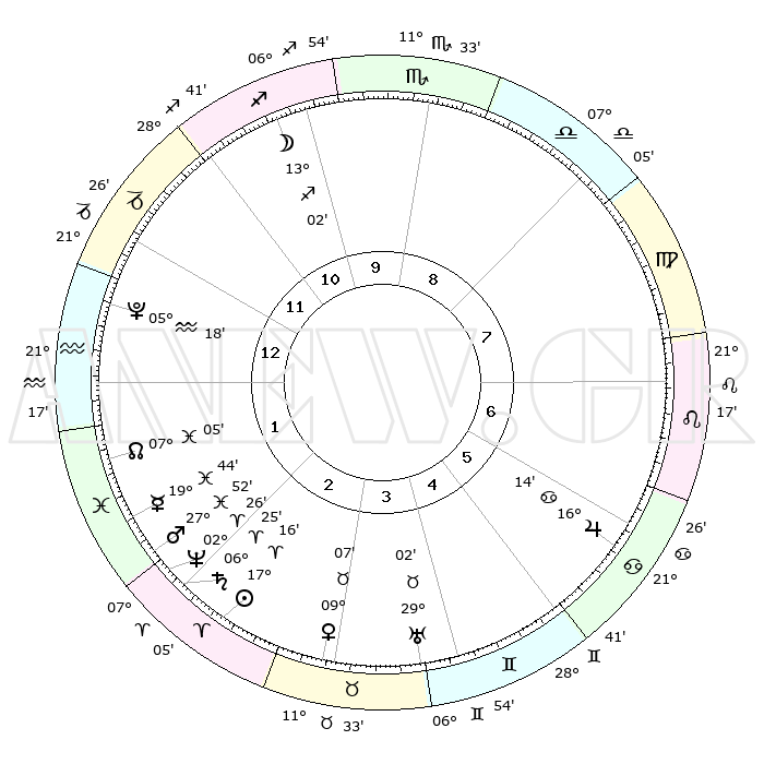 | | ΘΕΣΕΙΣ ΠΛΑΝΗΤΩΝ ΑΣΤΡΟΛΟΓΙΚΟΥ ΧΑΡΤΗ ΤΗΣ ΣΤΙΓΜΗΣ ΑΥΤΗΣ | | | | Πλανήτης | Ζώδιο | Μοίρες | Δεκαήμ. | Σε οίκο | Απόκλιση | | Ακμές των οίκων | | Ηλιος | Κριός | 17°12' | Δεύτερο | 3 | 06 N 45 | | 1ος | 21°41' | Αιγόκερως | | Σελήνη | Τοξότης | 12°15' | Δεύτερο | 11 | 27 S 22 | | 2ος | 04°11' | Ιχθείς | | Ερμής | Ιχθείς | 19°40' | Δεύτερο | 2 | 06 S 00 | | 3ος | 13°45' | Κριός | | Αφροδίτη | Ταύρος | 09°02' | Πρώτο | 3 | 14 N 20 | | 4ος | 13°42' | Ταύρος | | Αρης | Ιχθείς | 27°49' | Τρίτο | 2 | 01 S 48 | | 5ος | 07°11' | Δίδυμοι | | Δίας | Καρκίνος | 16°13' | Δεύτερο | 6 | 22 N 49 | | 6ος | 28°24' | Δίδυμοι | | Κρόνος | Κριός | 06°24' | Πρώτο | 2 | 00 N 35 | | 7ος | 21°41' | Καρκίνος | | Ουρανός | Ταύρος | 29°02' | Τρίτο | 4 | 19 N 46 | | 8ος | 04°11' | Παρθένος | | Ποσειδώνας | Κριός | 02°26' | Πρώτο | 2 | 00 S 14 | | 9ος | 13°45' | Ζυγός | | Πλούτωνας | Υδροχόος | 05°18' | Πρώτο | 1 | 22 S 47 | | 10ος | 13°42' | Σκορπιός | | Β. Δεσμός | Ιχθείς | 07°05' | Πρώτο | 2 | 08 S 54 | | 11ος | 07°11' | Τοξότης | | Ωροσκόπος | Αιγόκερως | 21°41' | Τρίτο | | | 12ος | 28°24' | Τοξότης | | Μεσουράνημα | Σκορπιός | 13°42' | Δεύτερο | | | |