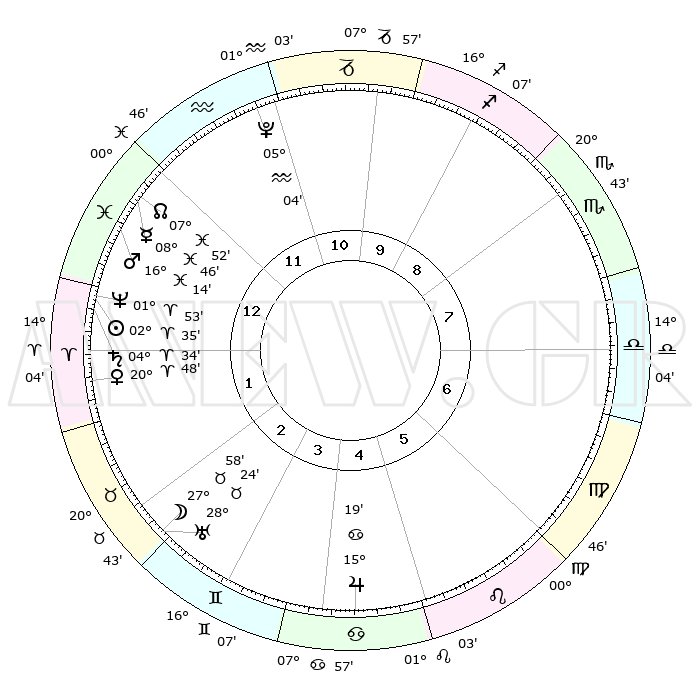 | | ΘΕΣΕΙΣ ΠΛΑΝΗΤΩΝ ΑΣΤΡΟΛΟΓΙΚΟΥ ΧΑΡΤΗ ΤΗΣ ΣΤΙΓΜΗΣ ΑΥΤΗΣ | | | | Πλανήτης | Ζώδιο | Μοίρες | Δεκαήμ. | Σε οίκο | Απόκλιση | | Ακμές των οίκων | | Ηλιος | Κριός | 02°31' | Πρώτο | 1 | 01 N 00 | | 1ος | 05°20' | Ιχθείς | | Σελήνη | Ταύρος | 27°00' | Τρίτο | 3 | 24 N 28 | | 2ος | 20°14' | Κριός | | Ερμής | Ιχθείς | 08°45' | Πρώτο | 1 | 07 S 53 | | 3ος | 21°55' | Ταύρος | | Αφροδίτη | Κριός | 20°43' | Τρίτο | 2 | 07 N 22 | | 4ος | 15°49' | Δίδυμοι | | Αρης | Ιχθείς | 16°11' | Δεύτερο | 1 | 06 S 26 | | 5ος | 07°30' | Καρκίνος | | Δίας | Καρκίνος | 15°19' | Δεύτερο | 5 | 22 N 55 | | 6ος | 01°38' | Λέων | | Κρόνος | Κριός | 04°33' | Πρώτο | 1 | 00 S 08 | | 7ος | 05°20' | Παρθένος | | Ουρανός | Ταύρος | 28°24' | Τρίτο | 3 | 19 N 38 | | 8ος | 20°14' | Ζυγός | | Ποσειδώνας | Κριός | 01°53' | Πρώτο | 1 | 00 S 27 | | 9ος | 21°55' | Σκορπιός | | Πλούτωνας | Υδροχόος | 05°03' | Πρώτο | 12 | 22 S 48 | | 10ος | 15°49' | Τοξότης | | Β. Δεσμός | Ιχθείς | 07°52' | Πρώτο | 1 | 08 S 37 | | 11ος | 07°30' | Αιγόκερως | | Ωροσκόπος | Ιχθείς | 05°20' | Πρώτο | | | 12ος | 01°38' | Υδροχόος | | Μεσουράνημα | Τοξότης | 15°49' | Δεύτερο | | | |