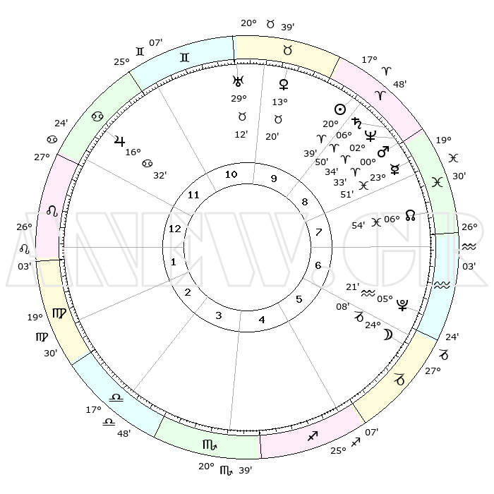 | | ΘΕΣΕΙΣ ΠΛΑΝΗΤΩΝ ΑΣΤΡΟΛΟΓΙΚΟΥ ΧΑΡΤΗ ΤΗΣ ΣΤΙΓΜΗΣ ΑΥΤΗΣ | | | | Πλανήτης | Ζώδιο | Μοίρες | Δεκαήμ. | Σε οίκο | Απόκλιση | | Ακμές των οίκων | | Ηλιος | Κριός | 20°35' | Τρίτο | 9 | 08 N 02 | | 1ος | 04°56' | Λέων | | Σελήνη | Αιγόκερως | 23°15' | Τρίτο | 6 | 25 S 02 | | 2ος | 26°20' | Λέων | | Ερμής | Ιχθείς | 23°45' | Τρίτο | 9 | 04 S 39 | | 3ος | 22°03' | Παρθένος | | Αφροδίτη | Ταύρος | 13°15' | Δεύτερο | 10 | 15 N 47 | | 4ος | 23°39' | Ζυγός | | Αρης | Κριός | 00°30' | Πρώτο | 9 | 00 S 44 | | 5ος | 29°31' | Σκορπιός | | Δίας | Καρκίνος | 16°31' | Δεύτερο | 12 | 22 N 47 | | 6ος | 04°26' | Αιγόκερως | | Κρόνος | Κριός | 06°50' | Πρώτο | 9 | 00 N 45 | | 7ος | 04°56' | Υδροχόος | | Ουρανός | Ταύρος | 29°12' | Τρίτο | 10 | 19 N 48 | | 8ος | 26°20' | Υδροχόος | | Ποσειδώνας | Κριός | 02°34' | Πρώτο | 9 | 00 S 11 | | 9ος | 22°03' | Ιχθείς | | Πλούτωνας | Υδροχόος | 05°21' | Πρώτο | 7 | 22 S 47 | | 10ος | 23°39' | Κριός | | Β. Δεσμός | Ιχθείς | 06°54' | Πρώτο | 8 | 08 S 59 | | 11ος | 29°31' | Ταύρος | | Ωροσκόπος | Λέων | 04°56' | Πρώτο | | | 12ος | 04°26' | Καρκίνος | | Μεσουράνημα | Κριός | 23°39' | Τρίτο | | | |