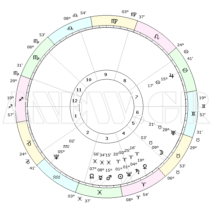 | | ΘΕΣΕΙΣ ΠΛΑΝΗΤΩΝ ΑΣΤΡΟΛΟΓΙΚΟΥ ΧΑΡΤΗ ΤΗΣ ΣΤΙΓΜΗΣ ΑΥΤΗΣ | | | | Πλανήτης | Ζώδιο | Μοίρες | Δεκαήμ. | Σε οίκο | Απόκλιση | | Ακμές των οίκων | | Ηλιος | Κριός | 01°16' | Πρώτο | 4 | 00 N 30 | | 1ος | 27°05' | Σκορπιός | | Σελήνη | Ταύρος | 08°47' | Πρώτο | 6 | 18 N 43 | | 2ος | 27°49' | Τοξότης | | Ερμής | Ιχθείς | 08°33' | Πρώτο | 3 | 07 S 41 | | 3ος | 03°03' | Υδροχόος | | Αφροδίτη | Κριός | 19°10' | Δεύτερο | 5 | 06 N 44 | | 4ος | 09°01' | Ιχθείς | | Αρης | Ιχθείς | 15°12' | Δεύτερο | 4 | 06 S 49 | | 5ος | 10°23' | Κριός | | Δίας | Καρκίνος | 15°16' | Δεύτερο | 8 | 22 N 55 | | 6ος | 05°50' | Ταύρος | | Κρόνος | Κριός | 04°24' | Πρώτο | 4 | 00 S 12 | | 7ος | 27°05' | Ταύρος | | Ουρανός | Ταύρος | 28°21' | Τρίτο | 7 | 19 N 37 | | 8ος | 27°49' | Δίδυμοι | | Ποσειδώνας | Κριός | 01°50' | Πρώτο | 4 | 00 S 28 | | 9ος | 03°03' | Λέων | | Πλούτωνας | Υδροχόος | 05°02' | Πρώτο | 3 | 22 S 48 | | 10ος | 09°01' | Παρθένος | | Β. Δεσμός | Ιχθείς | 07°56' | Πρώτο | 3 | 08 S 35 | | 11ος | 10°23' | Ζυγός | | Ωροσκόπος | Σκορπιός | 27°05' | Τρίτο | | | 12ος | 05°50' | Σκορπιός | | Μεσουράνημα | Παρθένος | 09°01' | Πρώτο | | | |