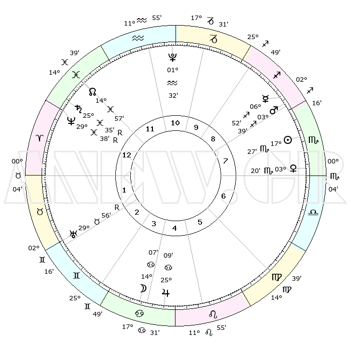 | | ΘΕΣΕΙΣ ΠΛΑΝΗΤΩΝ ΑΣΤΡΟΛΟΓΙΚΟΥ ΧΑΡΤΗ ΤΗΣ ΣΤΙΓΜΗΣ ΑΥΤΗΣ | | | | Πλανήτης | Ζώδιο | Μοίρες | Δεκαήμ. | Σε οίκο | Απόκλιση | | Ακμές των οίκων | | Ηλιος | Σκορπιός | 17°17' | Δεύτερο | 9 | 16 S 59 | | 1ος | 06°22' | Υδροχόος | | Σελήνη | Καρκίνος | 11°55' | Δεύτερο | 6 | 27 N 28 | | 2ος | 21°22' | Ιχθείς | | Ερμής | Τοξότης | 06°51' | Πρώτο | 10 | 23 S 49 | | 3ος | 28°44' | Κριός | | Αφροδίτη | Σκορπιός | 03°09' | Πρώτο | 9 | 11 S 18 | | 4ος | 26°08' | Ταύρος | | Αρης | Τοξότης | 03°32' | Πρώτο | 10 | 21 S 19 | | 5ος | 18°30' | Δίδυμοι | | Δίας | Καρκίνος | 25°09' | Τρίτο | 6 | 21 N 12 | | 6ος | 10°11' | Καρκίνος | | Κρόνος | Ιχθείς | 25°36'R | Τρίτο | 2 | 04 S 00 | | 7ος | 06°22' | Λέων | | Ουρανός | Ταύρος | 29°56'R | Τρίτο | 4 | 19 N 56 | | 8ος | 21°22' | Παρθένος | | Ποσειδώνας | Ιχθείς | 29°38'R | Τρίτο | 2 | 01 S 24 | | 9ος | 28°44' | Ζυγός | | Πλούτωνας | Υδροχόος | 01°32' | Πρώτο | 12 | 23 S 29 | | 10ος | 26°08' | Σκορπιός | | Β. Δεσμός | Ιχθείς | 14°57' | Δεύτερο | 1 | 05 S 56 | | 11ος | 18°30' | Τοξότης | | Ωροσκόπος | Υδροχόος | 06°22' | Πρώτο | | | 12ος | 10°11' | Αιγόκερως | | Μεσουράνημα | Σκορπιός | 26°08' | Τρίτο | | | |