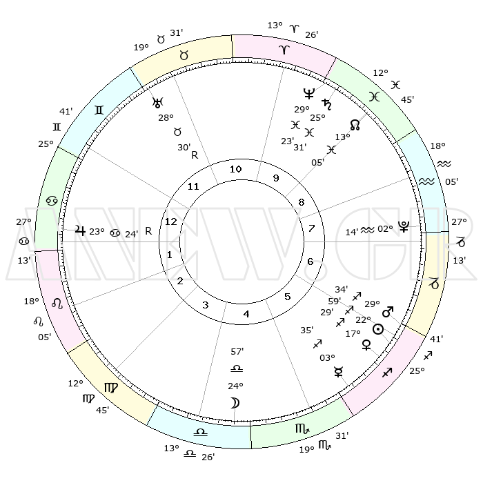 | | ΘΕΣΕΙΣ ΠΛΑΝΗΤΩΝ ΑΣΤΡΟΛΟΓΙΚΟΥ ΧΑΡΤΗ ΤΗΣ ΣΤΙΓΜΗΣ ΑΥΤΗΣ | | | | Πλανήτης | Ζώδιο | Μοίρες | Δεκαήμ. | Σε οίκο | Απόκλιση | | Ακμές των οίκων | | Ηλιος | Τοξότης | 22°41' | Τρίτο | 9 | 23 S 14 | | 1ος | 22°46' | Ιχθείς | | Σελήνη | Ζυγός | 21°25' | Τρίτο | 7 | 11 S 15 | | 2ος | 04°42' | Ταύρος | | Ερμής | Τοξότης | 03°11' | Πρώτο | 8 | 19 S 13 | | 3ος | 03°16' | Δίδυμοι | | Αφροδίτη | Τοξότης | 17°07' | Δεύτερο | 9 | 22 S 37 | | 4ος | 25°56' | Δίδυμοι | | Αρης | Τοξότης | 29°21' | Τρίτο | 10 | 24 S 12 | | 5ος | 17°57' | Καρκίνος | | Δίας | Καρκίνος | 23°25'R | Τρίτο | 5 | 21 N 36 | | 6ος | 14°17' | Λέων | | Κρόνος | Ιχθείς | 25°31' | Τρίτο | 1 | 03 S 55 | | 7ος | 22°46' | Παρθένος | | Ουρανός | Ταύρος | 28°31'R | Τρίτο | 2 | 19 N 38 | | 8ος | 04°42' | Σκορπιός | | Ποσειδώνας | Ιχθείς | 29°23' | Τρίτο | 1 | 01 S 29 | | 9ος | 03°16' | Τοξότης | | Πλούτωνας | Υδροχόος | 02°14' | Πρώτο | 11 | 23 S 20 | | 10ος | 25°56' | Τοξότης | | Β. Δεσμός | Ιχθείς | 13°06' | Δεύτερο | 12 | 06 S 38 | | 11ος | 17°57' | Αιγόκερως | | Ωροσκόπος | Ιχθείς | 22°46' | Τρίτο | | | 12ος | 14°17' | Υδροχόος | | Μεσουράνημα | Τοξότης | 25°56' | Τρίτο | | | |