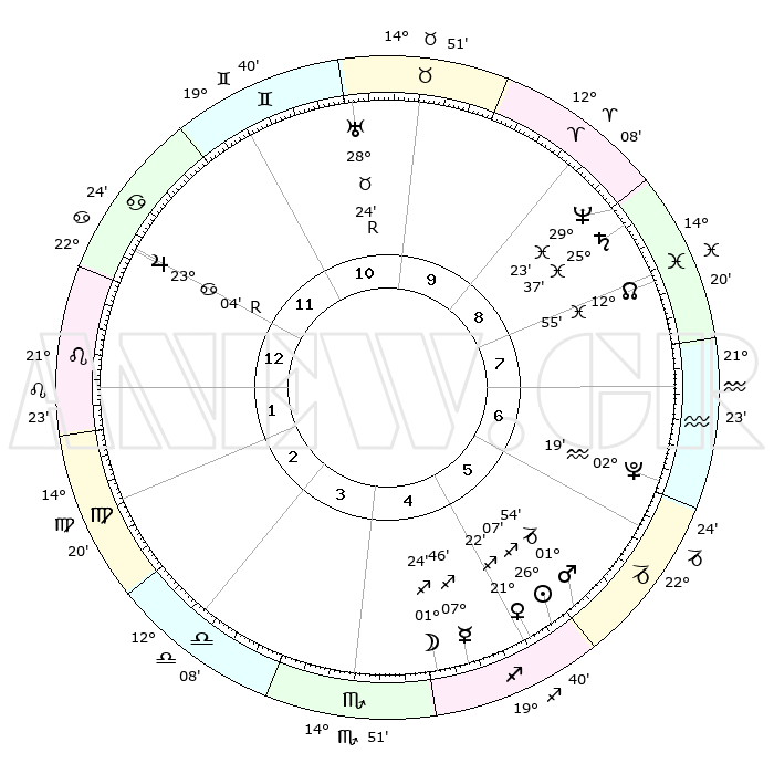 | | ΘΕΣΕΙΣ ΠΛΑΝΗΤΩΝ ΑΣΤΡΟΛΟΓΙΚΟΥ ΧΑΡΤΗ ΤΗΣ ΣΤΙΓΜΗΣ ΑΥΤΗΣ | | | | Πλανήτης | Ζώδιο | Μοίρες | Δεκαήμ. | Σε οίκο | Απόκλιση | | Ακμές των οίκων | | Ηλιος | Τοξότης | 26°02' | Τρίτο | 6 | 23 S 22 | | 1ος | 26°46' | Καρκίνος | | Σελήνη | Τοξότης | 00°23' | Πρώτο | 5 | 25 S 00 | | 2ος | 17°36' | Λέων | | Ερμής | Τοξότης | 07°39' | Πρώτο | 5 | 20 S 24 | | 3ος | 12°13' | Παρθένος | | Αφροδίτη | Τοξότης | 21°15' | Τρίτο | 5 | 23 S 05 | | 4ος | 12°50' | Ζυγός | | Αρης | Αιγόκερως | 01°50' | Πρώτο | 6 | 24 S 13 | | 5ος | 18°55' | Σκορπιός | | Δίας | Καρκίνος | 23°05'R | Τρίτο | 12 | 21 N 40 | | 6ος | 25°10' | Τοξότης | | Κρόνος | Ιχθείς | 25°37' | Τρίτο | 9 | 03 S 52 | | 7ος | 26°46' | Αιγόκερως | | Ουρανός | Ταύρος | 28°24'R | Τρίτο | 11 | 19 N 36 | | 8ος | 17°36' | Υδροχόος | | Ποσειδώνας | Ιχθείς | 29°23' | Τρίτο | 9 | 01 S 29 | | 9ος | 12°13' | Ιχθείς | | Πλούτωνας | Υδροχόος | 02°19' | Πρώτο | 7 | 23 S 18 | | 10ος | 12°50' | Κριός | | Β. Δεσμός | Ιχθείς | 12°56' | Δεύτερο | 9 | 06 S 42 | | 11ος | 18°55' | Ταύρος | | Ωροσκόπος | Καρκίνος | 26°46' | Τρίτο | | | 12ος | 25°10' | Δίδυμοι | | Μεσουράνημα | Κριός | 12°50' | Δεύτερο | | | |