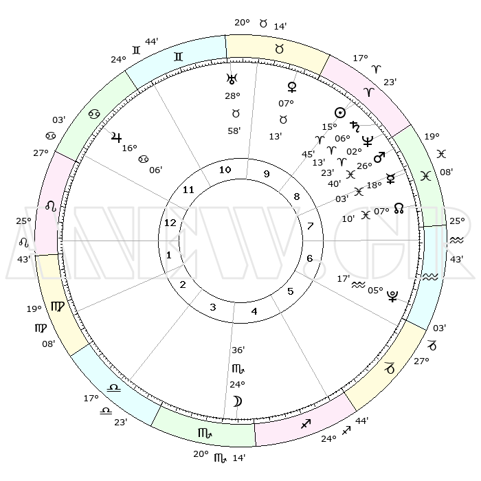 | | ΘΕΣΕΙΣ ΠΛΑΝΗΤΩΝ ΑΣΤΡΟΛΟΓΙΚΟΥ ΧΑΡΤΗ ΤΗΣ ΣΤΙΓΜΗΣ ΑΥΤΗΣ | | | | Πλανήτης | Ζώδιο | Μοίρες | Δεκαήμ. | Σε οίκο | Απόκλιση | | Ακμές των οίκων | | Ηλιος | Κριός | 15°29' | Δεύτερο | 11 | 06 N 06 | | 1ος | 00°43' | Δίδυμοι | | Σελήνη | Σκορπιός | 21°24' | Τρίτο | 6 | 22 S 52 | | 2ος | 25°23' | Δίδυμοι | | Ερμής | Ιχθείς | 17°46' | Δεύτερο | 11 | 06 S 34 | | 3ος | 16°47' | Καρκίνος | | Αφροδίτη | Ταύρος | 06°54' | Πρώτο | 12 | 13 N 34 | | 4ος | 09°36' | Λέων | | Αρης | Ιχθείς | 26°28' | Τρίτο | 11 | 02 S 21 | | 5ος | 08°11' | Παρθένος | | Δίας | Καρκίνος | 16°05' | Δεύτερο | 2 | 22 N 50 | | 6ος | 16°44' | Ζυγός | | Κρόνος | Κριός | 06°11' | Πρώτο | 11 | 00 N 30 | | 7ος | 00°43' | Τοξότης | | Ουρανός | Ταύρος | 28°57' | Τρίτο | 12 | 19 N 45 | | 8ος | 25°23' | Τοξότης | | Ποσειδώνας | Κριός | 02°22' | Πρώτο | 11 | 00 S 16 | | 9ος | 16°47' | Αιγόκερως | | Πλούτωνας | Υδροχόος | 05°17' | Πρώτο | 9 | 22 S 47 | | 10ος | 09°36' | Υδροχόος | | Β. Δεσμός | Ιχθείς | 07°11' | Πρώτο | 10 | 08 S 52 | | 11ος | 08°11' | Ιχθείς | | Ωροσκόπος | Δίδυμοι | 00°43' | Πρώτο | | | 12ος | 16°44' | Κριός | | Μεσουράνημα | Υδροχόος | 09°36' | Πρώτο | | | |