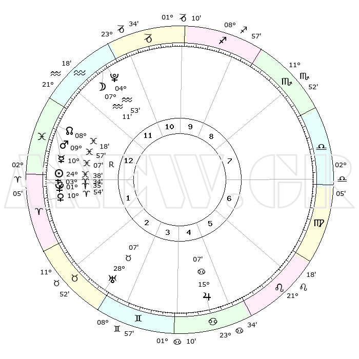 | | ΘΕΣΕΙΣ ΠΛΑΝΗΤΩΝ ΑΣΤΡΟΛΟΓΙΚΟΥ ΧΑΡΤΗ ΤΗΣ ΣΤΙΓΜΗΣ ΑΥΤΗΣ | | | | Πλανήτης | Ζώδιο | Μοίρες | Δεκαήμ. | Σε οίκο | Απόκλιση | | Ακμές των οίκων | | Ηλιος | Ιχθείς | 24°34' | Τρίτο | 1 | 02 S 10 | | 1ος | 26°09' | Υδροχόος | | Σελήνη | Υδροχόος | 06°23' | Πρώτο | 12 | 21 S 25 | | 2ος | 11°49' | Κριός | | Ερμής | Ιχθείς | 10°09'R | Δεύτερο | 1 | 05 S 33 | | 3ος | 15°18' | Ταύρος | | Αφροδίτη | Κριός | 10°49' | Δεύτερο | 1 | 03 N 19 | | 4ος | 10°06' | Δίδυμοι | | Αρης | Ιχθείς | 09°54' | Πρώτο | 1 | 08 S 52 | | 5ος | 01°49' | Καρκίνος | | Δίας | Καρκίνος | 15°07' | Δεύτερο | 5 | 22 N 56 | | 6ος | 24°59' | Καρκίνος | | Κρόνος | Κριός | 03°34' | Πρώτο | 1 | 00 S 32 | | 7ος | 26°09' | Λέων | | Ουρανός | Ταύρος | 28°07' | Τρίτο | 3 | 19 N 34 | | 8ος | 11°49' | Ζυγός | | Ποσειδώνας | Κριός | 01°34' | Πρώτο | 1 | 00 S 34 | | 9ος | 15°18' | Σκορπιός | | Πλούτωνας | Υδροχόος | 04°53' | Πρώτο | 12 | 22 S 49 | | 10ος | 10°06' | Τοξότης | | Β. Δεσμός | Ιχθείς | 08°18' | Πρώτο | 1 | 08 S 27 | | 11ος | 01°49' | Αιγόκερως | | Ωροσκόπος | Υδροχόος | 26°09' | Τρίτο | | | 12ος | 24°59' | Αιγόκερως | | Μεσουράνημα | Τοξότης | 10°06' | Δεύτερο | | | |