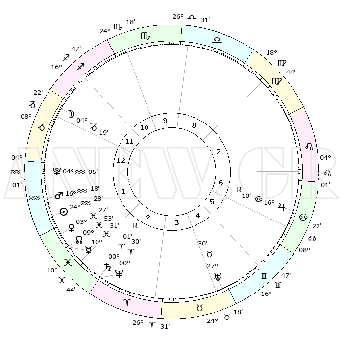 | | ΘΕΣΕΙΣ ΠΛΑΝΗΤΩΝ ΑΣΤΡΟΛΟΓΙΚΟΥ ΧΑΡΤΗ ΤΗΣ ΣΤΙΓΜΗΣ ΑΥΤΗΣ | | | | Πλανήτης | Ζώδιο | Μοίρες | Δεκαήμ. | Σε οίκο | Απόκλιση | | Ακμές των οίκων | | Ηλιος | Υδροχόος | 24°20' | Τρίτο | 2 | 13 S 24 | | 1ος | 15°59' | Τοξότης | | Σελήνη | Αιγόκερως | 02°42' | Πρώτο | 1 | 28 S 13 | | 2ος | 19°52' | Αιγόκερως | | Ερμής | Ιχθείς | 10°18' | Δεύτερο | 3 | 08 S 02 | | 3ος | 28°13' | Υδροχόος | | Αφροδίτη | Ιχθείς | 03°17' | Πρώτο | 3 | 11 S 40 | | 4ος | 03°52' | Κριός | | Αρης | Υδροχόος | 16°11' | Δεύτερο | 2 | 17 S 00 | | 5ος | 02°31' | Ταύρος | | Δίας | Καρκίνος | 16°11'R | Δεύτερο | 7 | 22 N 46 | | 6ος | 25°33' | Ταύρος | | Κρόνος | Κριός | 00°01'R | Πρώτο | 3 | 01 S 58 | | 7ος | 15°59' | Δίδυμοι | | Ουρανός | Ταύρος | 27°30' | Τρίτο | 6 | 19 N 25 | | 8ος | 19°52' | Καρκίνος | | Ποσειδώνας | Κριός | 00°30' | Πρώτο | 3 | 01 S 00 | | 9ος | 28°13' | Λέων | | Πλούτωνας | Υδροχόος | 04°05' | Πρώτο | 2 | 22 S 57 | | 10ος | 03°52' | Ζυγός | | Β. Δεσμός | Ιχθείς | 09°53' | Πρώτο | 3 | 07 S 52 | | 11ος | 02°31' | Σκορπιός | | Ωροσκόπος | Τοξότης | 15°59' | Δεύτερο | | | 12ος | 25°33' | Σκορπιός | | Μεσουράνημα | Ζυγός | 03°52' | Πρώτο | | | |