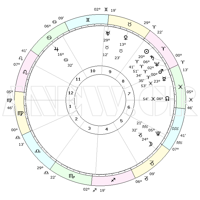 | | ΘΕΣΕΙΣ ΠΛΑΝΗΤΩΝ ΑΣΤΡΟΛΟΓΙΚΟΥ ΧΑΡΤΗ ΤΗΣ ΣΤΙΓΜΗΣ ΑΥΤΗΣ | | | | Πλανήτης | Ζώδιο | Μοίρες | Δεκαήμ. | Σε οίκο | Απόκλιση | | Ακμές των οίκων | | Ηλιος | Κριός | 20°37' | Τρίτο | 9 | 08 N 03 | | 1ος | 17°24' | Λέων | | Σελήνη | Αιγόκερως | 23°46' | Τρίτο | 6 | 24 S 54 | | 2ος | 09°57' | Παρθένος | | Ερμής | Ιχθείς | 23°48' | Τρίτο | 8 | 04 S 38 | | 3ος | 07°17' | Ζυγός | | Αφροδίτη | Ταύρος | 13°18' | Δεύτερο | 10 | 15 N 48 | | 4ος | 09°50' | Σκορπιός | | Αρης | Κριός | 00°32' | Πρώτο | 8 | 00 S 43 | | 5ος | 14°56' | Τοξότης | | Δίας | Καρκίνος | 16°32' | Δεύτερο | 11 | 22 N 47 | | 6ος | 18°08' | Αιγόκερως | | Κρόνος | Κριός | 06°50' | Πρώτο | 8 | 00 N 45 | | 7ος | 17°24' | Υδροχόος | | Ουρανός | Ταύρος | 29°12' | Τρίτο | 10 | 19 N 49 | | 8ος | 09°57' | Ιχθείς | | Ποσειδώνας | Κριός | 02°34' | Πρώτο | 8 | 00 S 11 | | 9ος | 07°17' | Κριός | | Πλούτωνας | Υδροχόος | 05°21' | Πρώτο | 6 | 22 S 47 | | 10ος | 09°50' | Ταύρος | | Β. Δεσμός | Ιχθείς | 06°54' | Πρώτο | 7 | 08 S 59 | | 11ος | 14°56' | Δίδυμοι | | Ωροσκόπος | Λέων | 17°24' | Δεύτερο | | | 12ος | 18°08' | Καρκίνος | | Μεσουράνημα | Ταύρος | 09°50' | Πρώτο | | | |