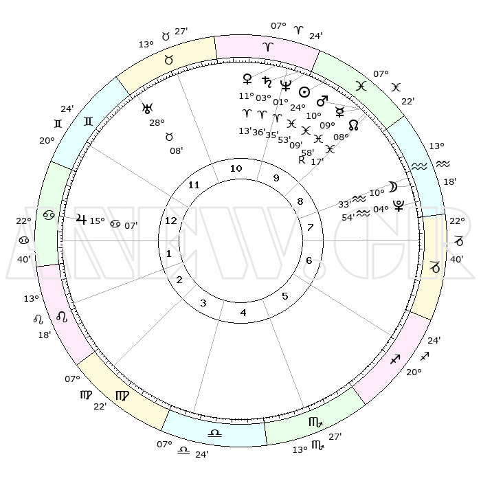 | | ΘΕΣΕΙΣ ΠΛΑΝΗΤΩΝ ΑΣΤΡΟΛΟΓΙΚΟΥ ΧΑΡΤΗ ΤΗΣ ΣΤΙΓΜΗΣ ΑΥΤΗΣ | | | | Πλανήτης | Ζώδιο | Μοίρες | Δεκαήμ. | Σε οίκο | Απόκλιση | | Ακμές των οίκων | | Ηλιος | Ιχθείς | 24°50' | Τρίτο | 10 | 02 S 03 | | 1ος | 06°16' | Καρκίνος | | Σελήνη | Υδροχόος | 09°52' | Πρώτο | 8 | 20 S 15 | | 2ος | 26°47' | Καρκίνος | | Ερμής | Ιχθείς | 09°60'R | Πρώτο | 9 | 05 S 40 | | 3ος | 19°04' | Λέων | | Αφροδίτη | Κριός | 11°09' | Δεύτερο | 10 | 03 N 28 | | 4ος | 16°24' | Παρθένος | | Αρης | Ιχθείς | 10°07' | Δεύτερο | 9 | 08 S 47 | | 5ος | 21°15' | Ζυγός | | Δίας | Καρκίνος | 15°07' | Δεύτερο | 1 | 22 N 56 | | 6ος | 00°39' | Τοξότης | | Κρόνος | Κριός | 03°36' | Πρώτο | 10 | 00 S 31 | | 7ος | 06°16' | Αιγόκερως | | Ουρανός | Ταύρος | 28°08' | Τρίτο | 11 | 19 N 34 | | 8ος | 26°47' | Αιγόκερως | | Ποσειδώνας | Κριός | 01°35' | Πρώτο | 10 | 00 S 34 | | 9ος | 19°04' | Υδροχόος | | Πλούτωνας | Υδροχόος | 04°54' | Πρώτο | 8 | 22 S 49 | | 10ος | 16°24' | Ιχθείς | | Β. Δεσμός | Ιχθείς | 08°17' | Πρώτο | 9 | 08 S 28 | | 11ος | 21°15' | Κριός | | Ωροσκόπος | Καρκίνος | 06°16' | Πρώτο | | | 12ος | 00°39' | Δίδυμοι | | Μεσουράνημα | Ιχθείς | 16°24' | Δεύτερο | | | |