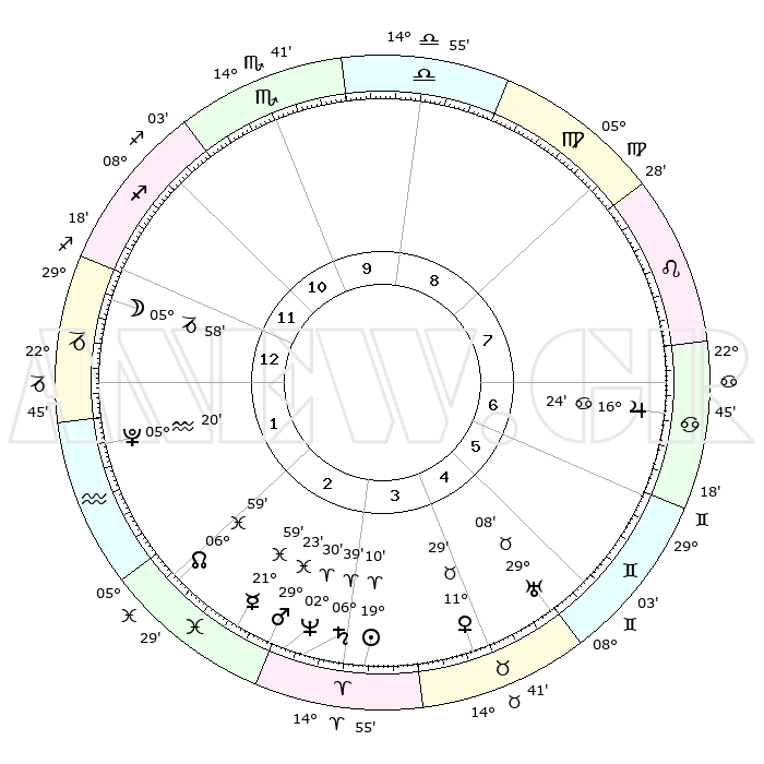 | | ΘΕΣΕΙΣ ΠΛΑΝΗΤΩΝ ΑΣΤΡΟΛΟΓΙΚΟΥ ΧΑΡΤΗ ΤΗΣ ΣΤΙΓΜΗΣ ΑΥΤΗΣ | | | | Πλανήτης | Ζώδιο | Μοίρες | Δεκαήμ. | Σε οίκο | Απόκλιση | | Ακμές των οίκων | | Ηλιος | Κριός | 19°06' | Δεύτερο | 4 | 07 N 28 | | 1ος | 26°18' | Τοξότης | | Σελήνη | Αιγόκερως | 05°05' | Πρώτο | 1 | 27 S 56 | | 2ος | 02°31' | Υδροχόος | | Ερμής | Ιχθείς | 21°54' | Τρίτο | 3 | 05 S 17 | | 3ος | 12°12' | Ιχθείς | | Αφροδίτη | Ταύρος | 11°24' | Δεύτερο | 4 | 15 N 09 | | 4ος | 16°42' | Κριός | | Αρης | Ιχθείς | 29°19' | Τρίτο | 3 | 01 S 12 | | 5ος | 13°37' | Ταύρος | | Δίας | Καρκίνος | 16°23' | Δεύτερο | 7 | 22 N 48 | | 6ος | 05°41' | Δίδυμοι | | Κρόνος | Κριός | 06°39' | Πρώτο | 3 | 00 N 40 | | 7ος | 26°18' | Δίδυμοι | | Ουρανός | Ταύρος | 29°08' | Τρίτο | 5 | 19 N 48 | | 8ος | 02°31' | Λέων | | Ποσειδώνας | Κριός | 02°30' | Πρώτο | 3 | 00 S 12 | | 9ος | 12°12' | Παρθένος | | Πλούτωνας | Υδροχόος | 05°20' | Πρώτο | 2 | 22 S 47 | | 10ος | 16°42' | Ζυγός | | Β. Δεσμός | Ιχθείς | 06°59' | Πρώτο | 2 | 08 S 57 | | 11ος | 13°37' | Σκορπιός | | Ωροσκόπος | Τοξότης | 26°18' | Τρίτο | | | 12ος | 05°41' | Τοξότης | | Μεσουράνημα | Ζυγός | 16°42' | Δεύτερο | | | |