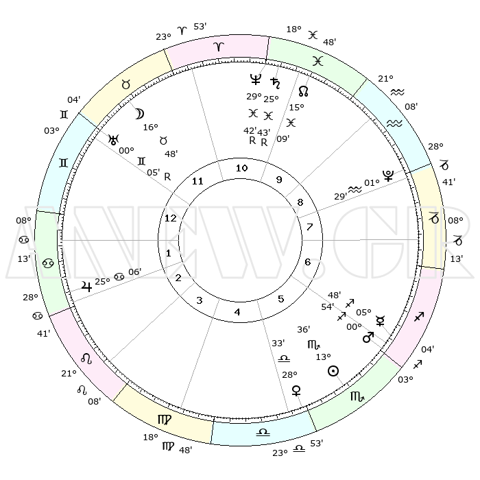| | ΘΕΣΕΙΣ ΠΛΑΝΗΤΩΝ ΑΣΤΡΟΛΟΓΙΚΟΥ ΧΑΡΤΗ ΤΗΣ ΣΤΙΓΜΗΣ ΑΥΤΗΣ | | | | Πλανήτης | Ζώδιο | Μοίρες | Δεκαήμ. | Σε οίκο | Απόκλιση | | Ακμές των οίκων | | Ηλιος | Σκορπιός | 13°31' | Δεύτερο | 6 | 15 S 54 | | 1ος | 07°54' | Δίδυμοι | | Σελήνη | Ταύρος | 15°28' | Δεύτερο | 12 | 20 N 37 | | 2ος | 01°15' | Καρκίνος | | Ερμής | Τοξότης | 05°46' | Πρώτο | 6 | 24 S 00 | | 3ος | 22°29' | Καρκίνος | | Αφροδίτη | Ζυγός | 28°27' | Τρίτο | 6 | 09 S 36 | | 4ος | 15°55' | Λέων | | Αρης | Τοξότης | 00°50' | Πρώτο | 6 | 20 S 45 | | 5ος | 15°48' | Παρθένος | | Δίας | Καρκίνος | 25°06' | Τρίτο | 3 | 21 N 12 | | 6ος | 25°19' | Ζυγός | | Κρόνος | Ιχθείς | 25°44'R | Τρίτο | 11 | 03 S 57 | | 7ος | 07°54' | Τοξότης | | Ουρανός | Δίδυμοι | 00°05'R | Πρώτο | 12 | 19 N 58 | | 8ος | 01°15' | Αιγόκερως | | Ποσειδώνας | Ιχθείς | 29°42'R | Τρίτο | 11 | 01 S 22 | | 9ος | 22°29' | Αιγόκερως | | Πλούτωνας | Υδροχόος | 01°29' | Πρώτο | 9 | 23 S 30 | | 10ος | 15°55' | Υδροχόος | | Β. Δεσμός | Ιχθείς | 15°09' | Δεύτερο | 10 | 05 S 51 | | 11ος | 15°48' | Ιχθείς | | Ωροσκόπος | Δίδυμοι | 07°54' | Πρώτο | | | 12ος | 25°19' | Κριός | | Μεσουράνημα | Υδροχόος | 15°55' | Δεύτερο | | | |