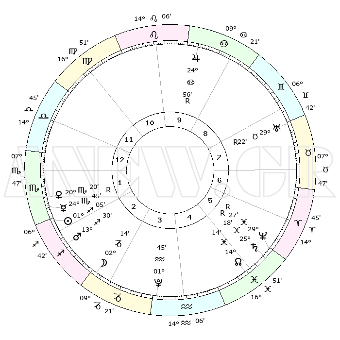 | | ΘΕΣΕΙΣ ΠΛΑΝΗΤΩΝ ΑΣΤΡΟΛΟΓΙΚΟΥ ΧΑΡΤΗ ΤΗΣ ΣΤΙΓΜΗΣ ΑΥΤΗΣ | | | | Πλανήτης | Ζώδιο | Μοίρες | Δεκαήμ. | Σε οίκο | Απόκλιση | | Ακμές των οίκων | | Ηλιος | Τοξότης | 00°10' | Πρώτο | 12 | 20 S 11 | | 1ος | 03°37' | Τοξότης | | Σελήνη | Τοξότης | 21°22' | Τρίτο | 1 | 28 S 07 | | 2ος | 05°17' | Αιγόκερως | | Ερμής | Σκορπιός | 25°52'R | Τρίτο | 12 | 18 S 06 | | 3ος | 11°36' | Υδροχόος | | Αφροδίτη | Σκορπιός | 19°11' | Δεύτερο | 12 | 16 S 33 | | 4ος | 17°41' | Ιχθείς | | Αρης | Τοξότης | 12°50' | Δεύτερο | 1 | 22 S 55 | | 5ος | 18°15' | Κριός | | Δίας | Καρκίνος | 24°58'R | Τρίτο | 8 | 21 N 16 | | 6ος | 12°48' | Ταύρος | | Κρόνος | Ιχθείς | 25°19'R | Τρίτο | 4 | 04 S 04 | | 7ος | 03°37' | Δίδυμοι | | Ουρανός | Ταύρος | 29°25'R | Τρίτο | 6 | 19 N 49 | | 8ος | 05°17' | Καρκίνος | | Ποσειδώνας | Ιχθείς | 29°28'R | Τρίτο | 4 | 01 S 28 | | 9ος | 11°36' | Λέων | | Πλούτωνας | Υδροχόος | 01°44' | Πρώτο | 2 | 23 S 26 | | 10ος | 17°41' | Παρθένος | | Β. Δεσμός | Ιχθείς | 14°16' | Δεύτερο | 3 | 06 S 11 | | 11ος | 18°15' | Ζυγός | | Ωροσκόπος | Τοξότης | 03°37' | Πρώτο | | | 12ος | 12°48' | Σκορπιός | | Μεσουράνημα | Παρθένος | 17°41' | Δεύτερο | | | |