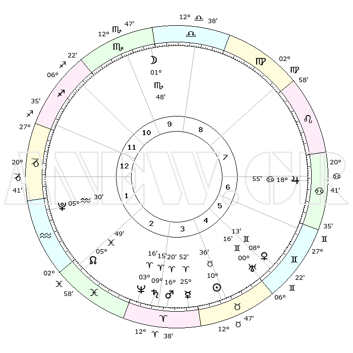 | | ΘΕΣΕΙΣ ΠΛΑΝΗΤΩΝ ΑΣΤΡΟΛΟΓΙΚΟΥ ΧΑΡΤΗ ΤΗΣ ΣΤΙΓΜΗΣ ΑΥΤΗΣ | | | | Πλανήτης | Ζώδιο | Μοίρες | Δεκαήμ. | Σε οίκο | Απόκλιση | | Ακμές των οίκων | | Ηλιος | Ταύρος | 10°33' | Δεύτερο | 4 | 14 N 59 | | 1ος | 04°29' | Αιγόκερως | | Σελήνη | Σκορπιός | 01°15' | Πρώτο | 10 | 15 S 45 | | 2ος | 12°46' | Υδροχόος | | Ερμής | Κριός | 25°47' | Τρίτο | 3 | 08 N 10 | | 3ος | 23°01' | Ιχθείς | | Αφροδίτη | Δίδυμοι | 08°10' | Πρώτο | 5 | 22 N 33 | | 4ος | 26°12' | Κριός | | Αρης | Κριός | 16°18' | Δεύτερο | 3 | 05 N 35 | | 5ος | 21°49' | Ταύρος | | Δίας | Καρκίνος | 18°54' | Δεύτερο | 7 | 22 N 29 | | 6ος | 13°22' | Δίδυμοι | | Κρόνος | Κριός | 09°15' | Πρώτο | 3 | 01 N 40 | | 7ος | 04°29' | Καρκίνος | | Ουρανός | Δίδυμοι | 00°16' | Πρώτο | 5 | 20 N 02 | | 8ος | 12°46' | Λέων | | Ποσειδώνας | Κριός | 03°16' | Πρώτο | 3 | 00 N 05 | | 9ος | 23°01' | Παρθένος | | Πλούτωνας | Υδροχόος | 05°30' | Πρώτο | 1 | 22 S 49 | | 10ος | 26°12' | Ζυγός | | Β. Δεσμός | Ιχθείς | 05°49' | Πρώτο | 2 | 09 S 22 | | 11ος | 21°49' | Σκορπιός | | Ωροσκόπος | Αιγόκερως | 04°29' | Πρώτο | | | 12ος | 13°22' | Τοξότης | | Μεσουράνημα | Ζυγός | 26°12' | Τρίτο | | | |