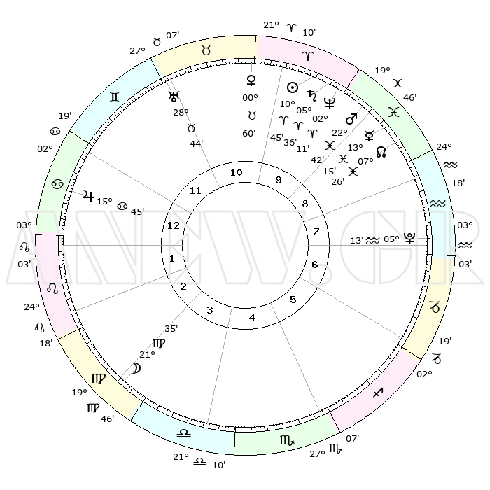 | | ΘΕΣΕΙΣ ΠΛΑΝΗΤΩΝ ΑΣΤΡΟΛΟΓΙΚΟΥ ΧΑΡΤΗ ΤΗΣ ΣΤΙΓΜΗΣ ΑΥΤΗΣ | | | | Πλανήτης | Ζώδιο | Μοίρες | Δεκαήμ. | Σε οίκο | Απόκλιση | | Ακμές των οίκων | | Ηλιος | Κριός | 10°41' | Δεύτερο | 10 | 04 N 14 | | 1ος | 14°03' | Καρκίνος | | Σελήνη | Παρθένος | 20°45' | Τρίτο | 3 | 02 N 40 | | 2ος | 04°29' | Λέων | | Ερμής | Ιχθείς | 13°12' | Δεύτερο | 9 | 07 S 43 | | 3ος | 27°32' | Λέων | | Αφροδίτη | Ταύρος | 00°55' | Πρώτο | 10 | 11 N 21 | | 4ος | 26°10' | Παρθένος | | Αρης | Ιχθείς | 22°39' | Τρίτο | 9 | 03 S 52 | | 5ος | 01°49' | Σκορπιός | | Δίας | Καρκίνος | 15°45' | Δεύτερο | 1 | 22 N 52 | | 6ος | 10°10' | Τοξότης | | Κρόνος | Κριός | 05°35' | Πρώτο | 10 | 00 N 16 | | 7ος | 14°03' | Αιγόκερως | | Ουρανός | Ταύρος | 28°44' | Τρίτο | 11 | 19 N 42 | | 8ος | 04°29' | Υδροχόος | | Ποσειδώνας | Κριός | 02°11' | Πρώτο | 10 | 00 S 20 | | 9ος | 27°31' | Υδροχόος | | Πλούτωνας | Υδροχόος | 05°12' | Πρώτο | 8 | 22 S 47 | | 10ος | 26°10' | Ιχθείς | | Β. Δεσμός | Ιχθείς | 07°26' | Πρώτο | 9 | 08 S 47 | | 11ος | 01°49' | Ταύρος | | Ωροσκόπος | Καρκίνος | 14°03' | Δεύτερο | | | 12ος | 10°10' | Δίδυμοι | | Μεσουράνημα | Ιχθείς | 26°10' | Τρίτο | | | |