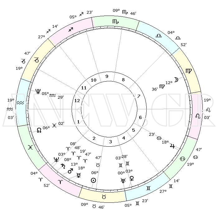 | | ΘΕΣΕΙΣ ΠΛΑΝΗΤΩΝ ΑΣΤΡΟΛΟΓΙΚΟΥ ΧΑΡΤΗ ΤΗΣ ΣΤΙΓΜΗΣ ΑΥΤΗΣ | | | | Πλανήτης | Ζώδιο | Μοίρες | Δεκαήμ. | Σε οίκο | Απόκλιση | | Ακμές των οίκων | | Ηλιος | Ταύρος | 06°43' | Πρώτο | 3 | 13 N 45 | | 1ος | 22°57' | Αιγόκερως | | Σελήνη | Παρθένος | 11°51' | Δεύτερο | 8 | 06 N 45 | | 2ος | 05°44' | Ιχθείς | | Ερμής | Κριός | 18°40' | Δεύτερο | 3 | 05 N 11 | | 3ος | 15°09' | Κριός | | Αφροδίτη | Δίδυμοι | 03°24' | Πρώτο | 4 | 21 N 32 | | 4ος | 14°53' | Ταύρος | | Αρης | Κριός | 13°17' | Δεύτερο | 2 | 04 N 24 | | 5ος | 08°14' | Δίδυμοι | | Δίας | Καρκίνος | 18°22' | Δεύτερο | 6 | 22 N 33 | | 6ος | 29°28' | Δίδυμοι | | Κρόνος | Κριός | 08°48' | Πρώτο | 2 | 01 N 30 | | 7ος | 22°57' | Καρκίνος | | Ουρανός | Δίδυμοι | 00°03' | Πρώτο | 4 | 20 N 00 | | 8ος | 05°44' | Παρθένος | | Ποσειδώνας | Κριός | 03°08' | Πρώτο | 2 | 00 N 02 | | 9ος | 15°09' | Ζυγός | | Πλούτωνας | Υδροχόος | 05°29' | Πρώτο | 1 | 22 S 48 | | 10ος | 14°53' | Σκορπιός | | Β. Δεσμός | Ιχθείς | 06°02' | Πρώτο | 2 | 09 S 18 | | 11ος | 08°14' | Τοξότης | | Ωροσκόπος | Αιγόκερως | 22°57' | Τρίτο | | | 12ος | 29°28' | Τοξότης | | Μεσουράνημα | Σκορπιός | 14°53' | Δεύτερο | | | |