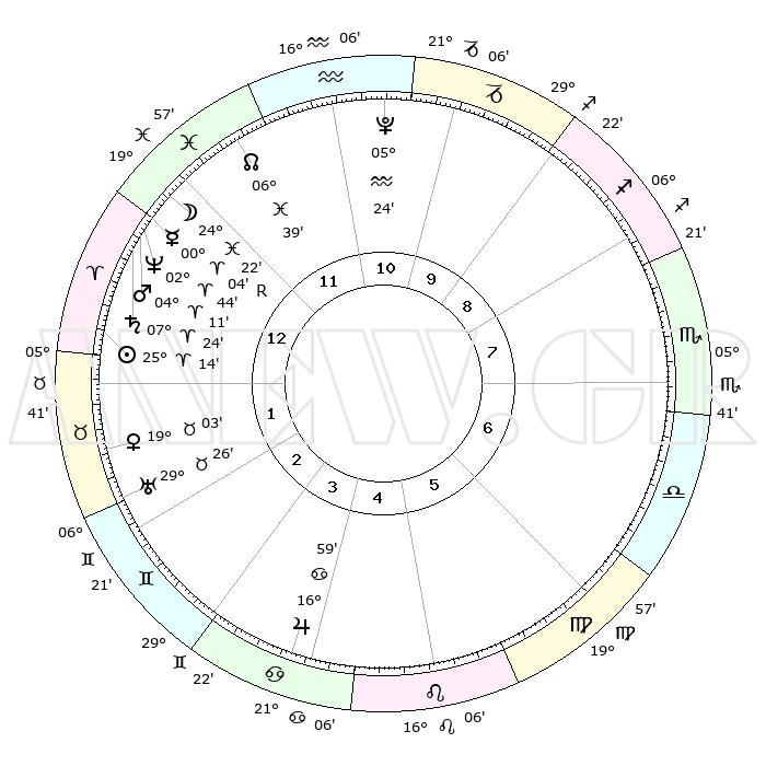 | | ΘΕΣΕΙΣ ΠΛΑΝΗΤΩΝ ΑΣΤΡΟΛΟΓΙΚΟΥ ΧΑΡΤΗ ΤΗΣ ΣΤΙΓΜΗΣ ΑΥΤΗΣ | | | | Πλανήτης | Ζώδιο | Μοίρες | Δεκαήμ. | Σε οίκο | Απόκλιση | | Ακμές των οίκων | | Ηλιος | Κριός | 25°11' | Τρίτο | 1 | 09 N 44 | | 1ος | 06°08' | Κριός | | Σελήνη | Ιχθείς | 23°38' | Τρίτο | 12 | 01 S 16 | | 2ος | 14°53' | Ταύρος | | Ερμής | Ιχθείς | 29°60' | Τρίτο | 12 | 02 S 23 | | 3ος | 11°23' | Δίδυμοι | | Αφροδίτη | Ταύρος | 18°59' | Δεύτερο | 2 | 17 N 38 | | 4ος | 03°27' | Καρκίνος | | Αρης | Κριός | 04°08' | Πρώτο | 12 | 00 N 45 | | 5ος | 26°03' | Καρκίνος | | Δίας | Καρκίνος | 16°59' | Δεύτερο | 4 | 22 N 44 | | 6ος | 24°26' | Λέων | | Κρόνος | Κριός | 07°24' | Πρώτο | 1 | 00 N 58 | | 7ος | 06°08' | Ζυγός | | Ουρανός | Ταύρος | 29°26' | Τρίτο | 2 | 19 N 52 | | 8ος | 14°53' | Σκορπιός | | Ποσειδώνας | Κριός | 02°44' | Πρώτο | 12 | 00 S 07 | | 9ος | 11°23' | Τοξότης | | Πλούτωνας | Υδροχόος | 05°24' | Πρώτο | 11 | 22 S 47 | | 10ος | 03°27' | Αιγόκερως | | Β. Δεσμός | Ιχθείς | 06°39' | Πρώτο | 12 | 09 S 04 | | 11ος | 26°03' | Αιγόκερως | | Ωροσκόπος | Κριός | 06°08' | Πρώτο | | | 12ος | 24°26' | Υδροχόος | | Μεσουράνημα | Αιγόκερως | 03°27' | Πρώτο | | | |