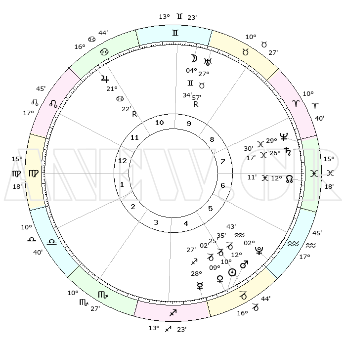 | | ΘΕΣΕΙΣ ΠΛΑΝΗΤΩΝ ΑΣΤΡΟΛΟΓΙΚΟΥ ΧΑΡΤΗ ΤΗΣ ΣΤΙΓΜΗΣ ΑΥΤΗΣ | | | | Πλανήτης | Ζώδιο | Μοίρες | Δεκαήμ. | Σε οίκο | Απόκλιση | | Ακμές των οίκων | | Ηλιος | Αιγόκερως | 10°20' | Δεύτερο | 5 | 23 S 02 | | 1ος | 20°59' | Λέων | | Σελήνη | Δίδυμοι | 03°19' | Πρώτο | 10 | 25 N 44 | | 2ος | 13°54' | Παρθένος | | Ερμής | Τοξότης | 28°19' | Τρίτο | 5 | 23 S 58 | | 3ος | 11°39' | Ζυγός | | Αφροδίτη | Αιγόκερως | 08°56' | Πρώτο | 5 | 23 S 38 | | 4ος | 14°21' | Σκορπιός | | Αρης | Αιγόκερως | 12°31' | Δεύτερο | 5 | 23 S 44 | | 5ος | 19°12' | Τοξότης | | Δίας | Καρκίνος | 21°23'R | Τρίτο | 11 | 21 N 58 | | 6ος | 21°59' | Αιγόκερως | | Κρόνος | Ιχθείς | 26°16' | Τρίτο | 8 | 03 S 33 | | 7ος | 20°59' | Υδροχόος | | Ουρανός | Ταύρος | 27°57'R | Τρίτο | 10 | 19 N 30 | | 8ος | 13°54' | Ιχθείς | | Ποσειδώνας | Ιχθείς | 29°30' | Τρίτο | 8 | 01 S 25 | | 9ος | 11°39' | Κριός | | Πλούτωνας | Υδροχόος | 02°43' | Πρώτο | 6 | 23 S 13 | | 10ος | 14°21' | Ταύρος | | Β. Δεσμός | Ιχθείς | 12°11' | Δεύτερο | 7 | 06 S 59 | | 11ος | 19°12' | Δίδυμοι | | Ωροσκόπος | Λέων | 20°59' | Τρίτο | | | 12ος | 21°59' | Καρκίνος | | Μεσουράνημα | Ταύρος | 14°21' | Δεύτερο | | | |