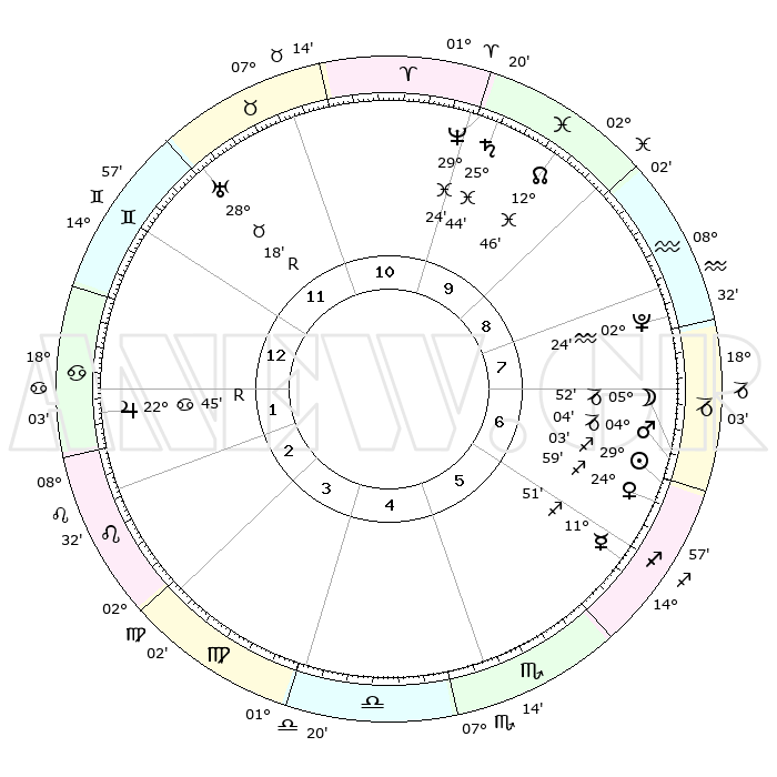 | | ΘΕΣΕΙΣ ΠΛΑΝΗΤΩΝ ΑΣΤΡΟΛΟΓΙΚΟΥ ΧΑΡΤΗ ΤΗΣ ΣΤΙΓΜΗΣ ΑΥΤΗΣ | | | | Πλανήτης | Ζώδιο | Μοίρες | Δεκαήμ. | Σε οίκο | Απόκλιση | | Ακμές των οίκων | | Ηλιος | Τοξότης | 28°57' | Τρίτο | 7 | 23 S 26 | | 1ος | 17°53' | Δίδυμοι | | Σελήνη | Αιγόκερως | 04°45' | Πρώτο | 7 | 27 S 58 | | 2ος | 09°47' | Καρκίνος | | Ερμής | Τοξότης | 11°43' | Δεύτερο | 6 | 21 S 22 | | 3ος | 01°03' | Λέων | | Αφροδίτη | Τοξότης | 24°52' | Τρίτο | 7 | 23 S 24 | | 4ος | 25°37' | Λέων | | Αρης | Αιγόκερως | 04°00' | Πρώτο | 7 | 24 S 11 | | 5ος | 27°24' | Παρθένος | | Δίας | Καρκίνος | 22°46'R | Τρίτο | 2 | 21 N 43 | | 6ος | 07°39' | Σκορπιός | | Κρόνος | Ιχθείς | 25°44' | Τρίτο | 10 | 03 S 48 | | 7ος | 17°53' | Τοξότης | | Ουρανός | Ταύρος | 28°18'R | Τρίτο | 12 | 19 N 35 | | 8ος | 09°47' | Αιγόκερως | | Ποσειδώνας | Ιχθείς | 29°24' | Τρίτο | 11 | 01 S 28 | | 9ος | 01°03' | Υδροχόος | | Πλούτωνας | Υδροχόος | 02°24' | Πρώτο | 9 | 23 S 17 | | 10ος | 25°37' | Υδροχόος | | Β. Δεσμός | Ιχθείς | 12°46' | Δεύτερο | 10 | 06 S 46 | | 11ος | 27°24' | Ιχθείς | | Ωροσκόπος | Δίδυμοι | 17°53' | Δεύτερο | | | 12ος | 07°39' | Ταύρος | | Μεσουράνημα | Υδροχόος | 25°37' | Τρίτο | | | |