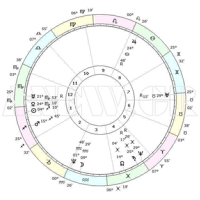 | | ΘΕΣΕΙΣ ΠΛΑΝΗΤΩΝ ΑΣΤΡΟΛΟΓΙΚΟΥ ΧΑΡΤΗ ΤΗΣ ΣΤΙΓΜΗΣ ΑΥΤΗΣ | | | | Πλανήτης | Ζώδιο | Μοίρες | Δεκαήμ. | Σε οίκο | Απόκλιση | | Ακμές των οίκων | | Ηλιος | Τοξότης | 04°10' | Πρώτο | 1 | 20 S 58 | | 1ος | 23°13' | Σκορπιός | | Σελήνη | Υδροχόος | 09°24' | Πρώτο | 3 | 20 S 41 | | 2ος | 23°31' | Τοξότης | | Ερμής | Σκορπιός | 21°54'R | Τρίτο | 12 | 16 S 11 | | 3ος | 28°08' | Αιγόκερως | | Αφροδίτη | Σκορπιός | 24°09' | Τρίτο | 1 | 17 S 58 | | 4ος | 03°56' | Ιχθείς | | Αρης | Τοξότης | 15°45' | Δεύτερο | 1 | 23 S 17 | | 5ος | 05°42' | Κριός | | Δίας | Καρκίνος | 24°48'R | Τρίτο | 8 | 21 N 18 | | 6ος | 01°41' | Ταύρος | | Κρόνος | Ιχθείς | 25°17'R | Τρίτο | 4 | 04 S 04 | | 7ος | 23°13' | Ταύρος | | Ουρανός | Ταύρος | 29°15'R | Τρίτο | 7 | 19 N 47 | | 8ος | 23°31' | Δίδυμοι | | Ποσειδώνας | Ιχθείς | 29°26'R | Τρίτο | 4 | 01 S 28 | | 9ος | 28°08' | Καρκίνος | | Πλούτωνας | Υδροχόος | 01°48' | Πρώτο | 3 | 23 S 25 | | 10ος | 03°56' | Παρθένος | | Β. Δεσμός | Ιχθείς | 14°04' | Δεύτερο | 4 | 06 S 16 | | 11ος | 05°42' | Ζυγός | | Ωροσκόπος | Σκορπιός | 23°13' | Τρίτο | | | 12ος | 01°41' | Σκορπιός | | Μεσουράνημα | Παρθένος | 03°56' | Πρώτο | | | |