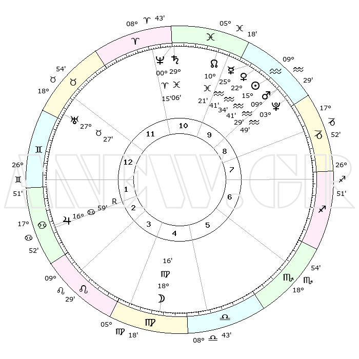 | | ΘΕΣΕΙΣ ΠΛΑΝΗΤΩΝ ΑΣΤΡΟΛΟΓΙΚΟΥ ΧΑΡΤΗ ΤΗΣ ΣΤΙΓΜΗΣ ΑΥΤΗΣ | | | | Πλανήτης | Ζώδιο | Μοίρες | Δεκαήμ. | Σε οίκο | Απόκλιση | | Ακμές των οίκων | | Ηλιος | Υδροχόος | 15°36' | Δεύτερο | 10 | 16 S 09 | | 1ος | 26°52' | Ταύρος | | Σελήνη | Παρθένος | 17°14' | Δεύτερο | 5 | 04 N 21 | | 2ος | 22°19' | Δίδυμοι | | Ερμής | Υδροχόος | 25°32' | Τρίτο | 10 | 14 S 32 | | 3ος | 13°52' | Καρκίνος | | Αφροδίτη | Υδροχόος | 22°29' | Τρίτο | 10 | 15 S 21 | | 4ος | 06°25' | Λέων | | Αρης | Υδροχόος | 09°25' | Πρώτο | 10 | 18 S 54 | | 5ος | 04°21' | Παρθένος | | Δίας | Καρκίνος | 16°59'R | Δεύτερο | 3 | 22 N 40 | | 6ος | 12°17' | Ζυγός | | Κρόνος | Ιχθείς | 29°06' | Τρίτο | 11 | 02 S 21 | | 7ος | 26°52' | Σκορπιός | | Ουρανός | Ταύρος | 27°27' | Τρίτο | 1 | 19 N 24 | | 8ος | 22°19' | Τοξότης | | Ποσειδώνας | Κριός | 00°14' | Πρώτο | 11 | 01 S 07 | | 9ος | 13°52' | Αιγόκερως | | Πλούτωνας | Υδροχόος | 03°49' | Πρώτο | 9 | 23 S 00 | | 10ος | 06°25' | Υδροχόος | | Β. Δεσμός | Ιχθείς | 10°21' | Δεύτερο | 11 | 07 S 41 | | 11ος | 04°21' | Ιχθείς | | Ωροσκόπος | Ταύρος | 26°52' | Τρίτο | | | 12ος | 12°17' | Κριός | | Μεσουράνημα | Υδροχόος | 06°25' | Πρώτο | | | |
