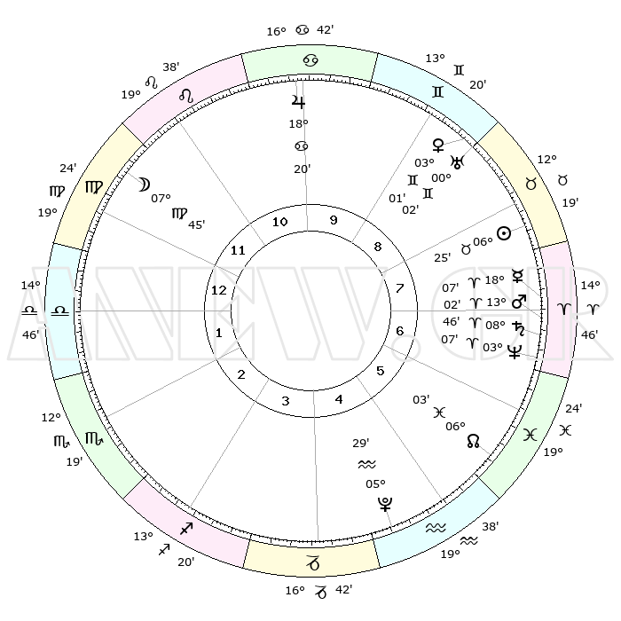| | ΘΕΣΕΙΣ ΠΛΑΝΗΤΩΝ ΑΣΤΡΟΛΟΓΙΚΟΥ ΧΑΡΤΗ ΤΗΣ ΣΤΙΓΜΗΣ ΑΥΤΗΣ | | | | Πλανήτης | Ζώδιο | Μοίρες | Δεκαήμ. | Σε οίκο | Απόκλιση | | Ακμές των οίκων | | Ηλιος | Ταύρος | 06°21' | Πρώτο | 8 | 13 N 38 | | 1ος | 25°57' | Παρθένος | | Σελήνη | Παρθένος | 06°55' | Πρώτο | 12 | 09 N 00 | | 2ος | 22°14' | Ζυγός | | Ερμής | Κριός | 18°01' | Δεύτερο | 7 | 04 N 55 | | 3ος | 22°30' | Σκορπιός | | Αφροδίτη | Δίδυμοι | 02°56' | Πρώτο | 9 | 21 N 26 | | 4ος | 25°27' | Τοξότης | | Αρης | Κριός | 12°59' | Δεύτερο | 7 | 04 N 17 | | 5ος | 28°29' | Αιγόκερως | | Δίας | Καρκίνος | 18°19' | Δεύτερο | 10 | 22 N 34 | | 6ος | 29°04' | Υδροχόος | | Κρόνος | Κριός | 08°45' | Πρώτο | 7 | 01 N 29 | | 7ος | 25°57' | Ιχθείς | | Ουρανός | Δίδυμοι | 00°02' | Πρώτο | 9 | 19 N 59 | | 8ος | 22°14' | Κριός | | Ποσειδώνας | Κριός | 03°07' | Πρώτο | 7 | 00 N 02 | | 9ος | 22°30' | Ταύρος | | Πλούτωνας | Υδροχόος | 05°29' | Πρώτο | 5 | 22 S 48 | | 10ος | 25°27' | Δίδυμοι | | Β. Δεσμός | Ιχθείς | 06°03' | Πρώτο | 6 | 09 S 17 | | 11ος | 28°29' | Καρκίνος | | Ωροσκόπος | Παρθένος | 25°57' | Τρίτο | | | 12ος | 29°04' | Λέων | | Μεσουράνημα | Δίδυμοι | 25°27' | Τρίτο | | | |
