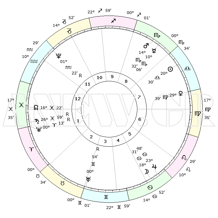 | ΘΕΣΕΙΣ ΠΛΑΝΗΤΩΝ ΑΣΤΡΟΛΟΓΙΚΟΥ ΧΑΡΤΗ ΤΗΣ ΣΤΙΓΜΗΣ ΑΥΤΗΣ | | Πλανήτης | Ζώδιο | Μοίρες | Δεκαήμ. | Σε οίκο | Απόκλιση | | Ακμές των οίκων | Ηλιος | Ζυγός | 20°25' | Τρίτο | 8 | 07 S 59 | | 1ος | 02°01' | Υδροχόος | Σελήνη | Καρκίνος | 17°17' | Δεύτερο | 6 | 26 N 50 | | 2ος | 16°26' | Ιχθείς | Ερμής | Σκορπιός | 09°59' | Πρώτο | 9 | 16 S 18 | | 3ος | 24°33' | Κριός | Αφροδίτη | Παρθένος | 29°33' | Τρίτο | 8 | 01 N 33 | | 4ος | 22°41' | Ταύρος | Αρης | Σκορπιός | 14°28' | Δεύτερο | 9 | 16 S 23 | | 5ος | 15°18' | Δίδυμοι | Δίας | Καρκίνος | 23°48' | Τρίτο | 6 | 21 N 23 | | 6ος | 06°48' | Καρκίνος | Κρόνος | Ιχθείς | 26°59'R | Τρίτο | 2 | 03 S 30 | | 7ος | 02°01' | Λέων | Ουρανός | Δίδυμοι | 00°54'R | Πρώτο | 4 | 20 N 08 | | 8ος | 16°26' | Παρθένος | Ποσειδώνας | Κριός | 00°13'R | Πρώτο | 2 | 01 S 11 | | 9ος | 24°33' | Ζυγός | Πλούτωνας | Υδροχόος | 01°22'R | Πρώτο | 12 | 23 S 32 | | 10ος | 22°41' | Σκορπιός | Β. Δεσμός | Ιχθείς | 16°23' | Δεύτερο | 1 | 05 S 22 | | 11ος | 15°18' | Τοξότης | Ωροσκόπος | Υδροχόος | 02°01' | Πρώτο | | | 12ος | 06°48' | Αιγόκερως | Μεσουράνημα | Σκορπιός | 22°41' | Τρίτο | | | |