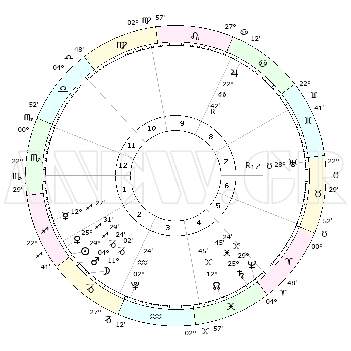 | | ΘΕΣΕΙΣ ΠΛΑΝΗΤΩΝ ΑΣΤΡΟΛΟΓΙΚΟΥ ΧΑΡΤΗ ΤΗΣ ΣΤΙΓΜΗΣ ΑΥΤΗΣ | | | | Πλανήτης | Ζώδιο | Μοίρες | Δεκαήμ. | Σε οίκο | Απόκλιση | | Ακμές των οίκων | | Ηλιος | Τοξότης | 29°20' | Τρίτο | 3 | 23 S 26 | | 1ος | 10°25' | Ζυγός | | Σελήνη | Αιγόκερως | 09°17' | Πρώτο | 3 | 27 S 33 | | 2ος | 07°42' | Σκορπιός | | Ερμής | Τοξότης | 12°15' | Δεύτερο | 3 | 21 S 30 | | 3ος | 08°32' | Τοξότης | | Αφροδίτη | Τοξότης | 25°20' | Τρίτο | 3 | 23 S 26 | | 4ος | 11°44' | Αιγόκερως | | Αρης | Αιγόκερως | 04°17' | Πρώτο | 3 | 24 S 11 | | 5ος | 14°40' | Υδροχόος | | Δίας | Καρκίνος | 22°43'R | Τρίτο | 10 | 21 N 44 | | 6ος | 14°39' | Ιχθείς | | Κρόνος | Ιχθείς | 25°45' | Τρίτο | 6 | 03 S 48 | | 7ος | 10°25' | Κριός | | Ουρανός | Ταύρος | 28°17'R | Τρίτο | 8 | 19 N 35 | | 8ος | 07°42' | Ταύρος | | Ποσειδώνας | Ιχθείς | 29°24' | Τρίτο | 6 | 01 S 28 | | 9ος | 08°32' | Δίδυμοι | | Πλούτωνας | Υδροχόος | 02°24' | Πρώτο | 4 | 23 S 17 | | 10ος | 11°44' | Καρκίνος | | Β. Δεσμός | Ιχθείς | 12°45' | Δεύτερο | 5 | 06 S 46 | | 11ος | 14°40' | Λέων | | Ωροσκόπος | Ζυγός | 10°25' | Δεύτερο | | | 12ος | 14°39' | Παρθένος | | Μεσουράνημα | Καρκίνος | 11°44' | Δεύτερο | | | |