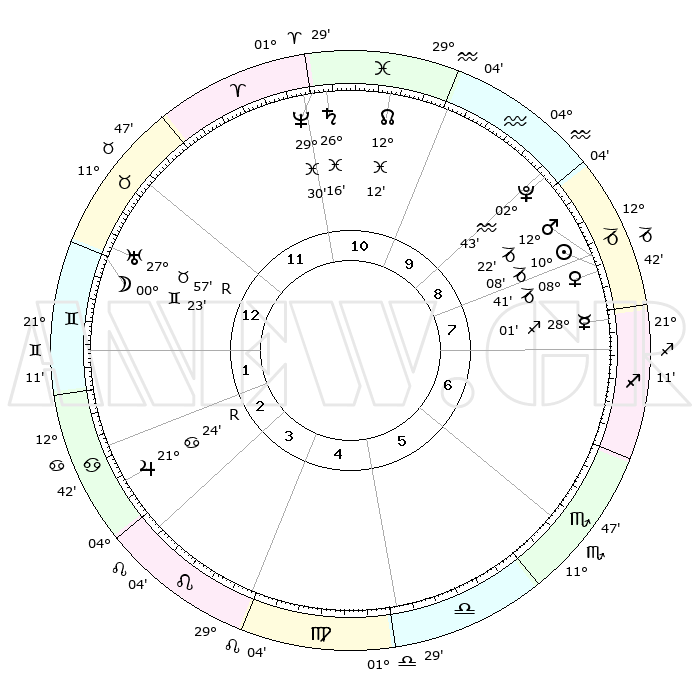 | | ΘΕΣΕΙΣ ΠΛΑΝΗΤΩΝ ΑΣΤΡΟΛΟΓΙΚΟΥ ΧΑΡΤΗ ΤΗΣ ΣΤΙΓΜΗΣ ΑΥΤΗΣ | | | | Πλανήτης | Ζώδιο | Μοίρες | Δεκαήμ. | Σε οίκο | Απόκλιση | | Ακμές των οίκων | | Ηλιος | Αιγόκερως | 10°03' | Δεύτερο | 9 | 23 S 03 | | 1ος | 15°29' | Ταύρος | | Σελήνη | Ταύρος | 29°06' | Τρίτο | 1 | 24 N 47 | | 2ος | 13°36' | Δίδυμοι | | Ερμής | Τοξότης | 27°53' | Τρίτο | 8 | 23 S 56 | | 3ος | 05°48' | Καρκίνος | | Αφροδίτη | Αιγόκερως | 08°35' | Πρώτο | 9 | 23 S 38 | | 4ος | 27°47' | Καρκίνος | | Αρης | Αιγόκερως | 12°18' | Δεύτερο | 9 | 23 S 45 | | 5ος | 24°00' | Λέων | | Δίας | Καρκίνος | 21°25'R | Τρίτο | 3 | 21 N 58 | | 6ος | 29°49' | Παρθένος | | Κρόνος | Ιχθείς | 26°15' | Τρίτο | 11 | 03 S 34 | | 7ος | 15°29' | Σκορπιός | | Ουρανός | Ταύρος | 27°57'R | Τρίτο | 1 | 19 N 30 | | 8ος | 13°36' | Τοξότης | | Ποσειδώνας | Ιχθείς | 29°30' | Τρίτο | 11 | 01 S 25 | | 9ος | 05°48' | Αιγόκερως | | Πλούτωνας | Υδροχόος | 02°42' | Πρώτο | 10 | 23 S 13 | | 10ος | 27°47' | Αιγόκερως | | Β. Δεσμός | Ιχθείς | 12°12' | Δεύτερο | 11 | 06 S 59 | | 11ος | 24°00' | Υδροχόος | | Ωροσκόπος | Ταύρος | 15°29' | Δεύτερο | | | 12ος | 29°49' | Ιχθείς | | Μεσουράνημα | Αιγόκερως | 27°47' | Τρίτο | | | |
