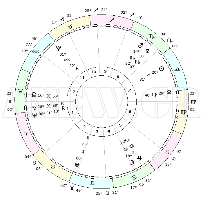 | ΘΕΣΕΙΣ ΠΛΑΝΗΤΩΝ ΑΣΤΡΟΛΟΓΙΚΟΥ ΧΑΡΤΗ ΤΗΣ ΣΤΙΓΜΗΣ ΑΥΤΗΣ | | Πλανήτης | Ζώδιο | Μοίρες | Δεκαήμ. | Σε οίκο | Απόκλιση | | Ακμές των οίκων | Ηλιος | Ζυγός | 20°26' | Τρίτο | 8 | 07 S 59 | | 1ος | 06°37' | Υδροχόος | Σελήνη | Καρκίνος | 17°26' | Δεύτερο | 6 | 26 N 48 | | 2ος | 21°39' | Ιχθείς | Ερμής | Σκορπιός | 09°60' | Πρώτο | 9 | 16 S 18 | | 3ος | 28°58' | Κριός | Αφροδίτη | Παρθένος | 29°33' | Τρίτο | 8 | 01 N 33 | | 4ος | 26°21' | Ταύρος | Αρης | Σκορπιός | 14°29' | Δεύτερο | 9 | 16 S 23 | | 5ος | 18°41' | Δίδυμοι | Δίας | Καρκίνος | 23°48' | Τρίτο | 6 | 21 N 23 | | 6ος | 10°24' | Καρκίνος | Κρόνος | Ιχθείς | 26°59'R | Τρίτο | 2 | 03 S 30 | | 7ος | 06°37' | Λέων | Ουρανός | Δίδυμοι | 00°54'R | Πρώτο | 4 | 20 N 08 | | 8ος | 21°39' | Παρθένος | Ποσειδώνας | Κριός | 00°13'R | Πρώτο | 2 | 01 S 11 | | 9ος | 28°58' | Ζυγός | Πλούτωνας | Υδροχόος | 01°22'R | Πρώτο | 12 | 23 S 32 | | 10ος | 26°21' | Σκορπιός | Β. Δεσμός | Ιχθείς | 16°23' | Δεύτερο | 1 | 05 S 22 | | 11ος | 18°41' | Τοξότης | Ωροσκόπος | Υδροχόος | 06°37' | Πρώτο | | | 12ος | 10°24' | Αιγόκερως | Μεσουράνημα | Σκορπιός | 26°21' | Τρίτο | | | |