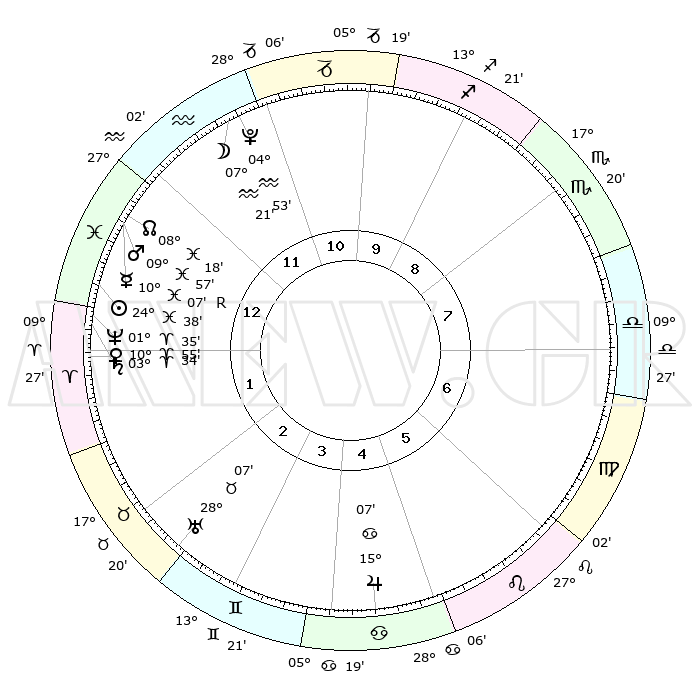 | | ΘΕΣΕΙΣ ΠΛΑΝΗΤΩΝ ΑΣΤΡΟΛΟΓΙΚΟΥ ΧΑΡΤΗ ΤΗΣ ΣΤΙΓΜΗΣ ΑΥΤΗΣ | | | | Πλανήτης | Ζώδιο | Μοίρες | Δεκαήμ. | Σε οίκο | Απόκλιση | | Ακμές των οίκων | | Ηλιος | Ιχθείς | 24°35' | Τρίτο | 1 | 02 S 09 | | 1ος | 06°42' | Ιχθείς | | Σελήνη | Υδροχόος | 06°38' | Πρώτο | 12 | 21 S 20 | | 2ος | 21°26' | Κριός | | Ερμής | Ιχθείς | 10°09'R | Δεύτερο | 1 | 05 S 34 | | 3ος | 22°51' | Ταύρος | | Αφροδίτη | Κριός | 10°50' | Δεύτερο | 1 | 03 N 20 | | 4ος | 16°38' | Δίδυμοι | | Αρης | Ιχθείς | 09°55' | Πρώτο | 1 | 08 S 51 | | 5ος | 08°20' | Καρκίνος | | Δίας | Καρκίνος | 15°07' | Δεύτερο | 5 | 22 N 56 | | 6ος | 02°37' | Λέων | | Κρόνος | Κριός | 03°34' | Πρώτο | 1 | 00 S 32 | | 7ος | 06°42' | Παρθένος | | Ουρανός | Ταύρος | 28°07' | Τρίτο | 3 | 19 N 34 | | 8ος | 21°26' | Ζυγός | | Ποσειδώνας | Κριός | 01°34' | Πρώτο | 1 | 00 S 34 | | 9ος | 22°51' | Σκορπιός | | Πλούτωνας | Υδροχόος | 04°53' | Πρώτο | 12 | 22 S 49 | | 10ος | 16°38' | Τοξότης | | Β. Δεσμός | Ιχθείς | 08°18' | Πρώτο | 1 | 08 S 27 | | 11ος | 08°20' | Αιγόκερως | | Ωροσκόπος | Ιχθείς | 06°42' | Πρώτο | | | 12ος | 02°37' | Υδροχόος | | Μεσουράνημα | Τοξότης | 16°38' | Δεύτερο | | | |