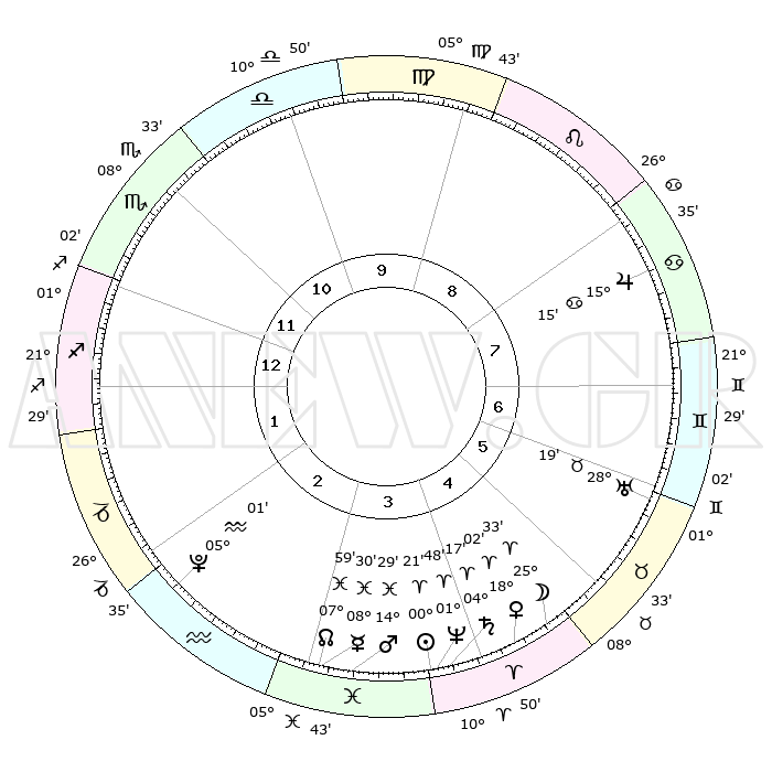 | | ΘΕΣΕΙΣ ΠΛΑΝΗΤΩΝ ΑΣΤΡΟΛΟΓΙΚΟΥ ΧΑΡΤΗ ΤΗΣ ΣΤΙΓΜΗΣ ΑΥΤΗΣ | | | | Πλανήτης | Ζώδιο | Μοίρες | Δεκαήμ. | Σε οίκο | Απόκλιση | | Ακμές των οίκων | | Ηλιος | Κριός | 00°17' | Πρώτο | 4 | 00 N 07 | | 1ος | 29°44' | Σκορπιός | | Σελήνη | Κριός | 24°31' | Τρίτο | 5 | 12 N 59 | | 2ος | 00°49' | Αιγόκερως | | Ερμής | Ιχθείς | 08°30'R | Πρώτο | 3 | 07 S 29 | | 3ος | 06°29' | Υδροχόος | | Αφροδίτη | Κριός | 17°56' | Δεύτερο | 5 | 06 N 14 | | 4ος | 12°31' | Ιχθείς | | Αρης | Ιχθείς | 14°25' | Δεύτερο | 4 | 07 S 08 | | 5ος | 13°35' | Κριός | | Δίας | Καρκίνος | 15°14' | Δεύτερο | 8 | 22 N 55 | | 6ος | 08°40' | Ταύρος | | Κρόνος | Κριός | 04°17' | Πρώτο | 4 | 00 S 15 | | 7ος | 29°44' | Ταύρος | | Ουρανός | Ταύρος | 28°19' | Τρίτο | 6 | 19 N 37 | | 8ος | 00°49' | Καρκίνος | | Ποσειδώνας | Κριός | 01°47' | Πρώτο | 4 | 00 S 29 | | 9ος | 06°29' | Λέων | | Πλούτωνας | Υδροχόος | 05°01' | Πρώτο | 2 | 22 S 49 | | 10ος | 12°31' | Παρθένος | | Β. Δεσμός | Ιχθείς | 07°59' | Πρώτο | 3 | 08 S 34 | | 11ος | 13°35' | Ζυγός | | Ωροσκόπος | Σκορπιός | 29°44' | Τρίτο | | | 12ος | 08°40' | Σκορπιός | | Μεσουράνημα | Παρθένος | 12°31' | Δεύτερο | | | |