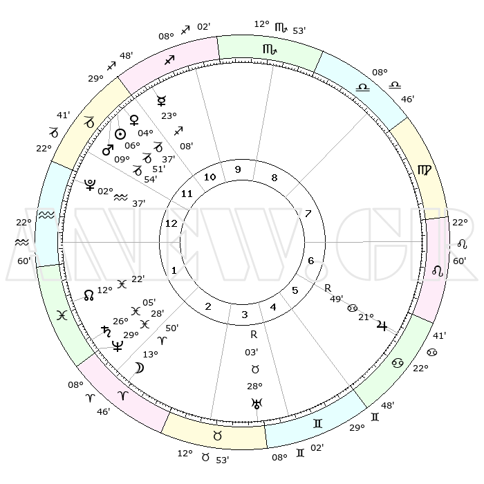 | | ΘΕΣΕΙΣ ΠΛΑΝΗΤΩΝ ΑΣΤΡΟΛΟΓΙΚΟΥ ΧΑΡΤΗ ΤΗΣ ΣΤΙΓΜΗΣ ΑΥΤΗΣ | | | | Πλανήτης | Ζώδιο | Μοίρες | Δεκαήμ. | Σε οίκο | Απόκλιση | | Ακμές των οίκων | | Ηλιος | Αιγόκερως | 06°46' | Πρώτο | 12 | 23 S 16 | | 1ος | 19°60' | Αιγόκερως | | Σελήνη | Κριός | 12°49' | Δεύτερο | 3 | 07 N 31 | | 2ος | 02°08' | Ιχθείς | | Ερμής | Τοξότης | 23°01' | Τρίτο | 11 | 23 S 24 | | 3ος | 11°52' | Κριός | | Αφροδίτη | Αιγόκερως | 04°32' | Πρώτο | 12 | 23 S 43 | | 4ος | 12°08' | Ταύρος | | Αρης | Αιγόκερως | 09°51' | Πρώτο | 12 | 23 S 56 | | 5ος | 05°47' | Δίδυμοι | | Δίας | Καρκίνος | 21°50'R | Τρίτο | 7 | 21 N 53 | | 6ος | 27°00' | Δίδυμοι | | Κρόνος | Ιχθείς | 26°05' | Τρίτο | 2 | 03 S 39 | | 7ος | 19°60' | Καρκίνος | | Ουρανός | Ταύρος | 28°03'R | Τρίτο | 4 | 19 N 32 | | 8ος | 02°08' | Παρθένος | | Ποσειδώνας | Ιχθείς | 29°28' | Τρίτο | 2 | 01 S 26 | | 9ος | 11°52' | Ζυγός | | Πλούτωνας | Υδροχόος | 02°37' | Πρώτο | 1 | 23 S 15 | | 10ος | 12°08' | Σκορπιός | | Β. Δεσμός | Ιχθείς | 12°22' | Δεύτερο | 2 | 06 S 55 | | 11ος | 05°47' | Τοξότης | | Ωροσκόπος | Αιγόκερως | 19°60' | Δεύτερο | | | 12ος | 27°00' | Τοξότης | | Μεσουράνημα | Σκορπιός | 12°08' | Δεύτερο | | | |