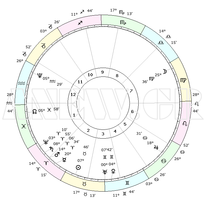 | | ΘΕΣΕΙΣ ΠΛΑΝΗΤΩΝ ΑΣΤΡΟΛΟΓΙΚΟΥ ΧΑΡΤΗ ΤΗΣ ΣΤΙΓΜΗΣ ΑΥΤΗΣ | | | | Πλανήτης | Ζώδιο | Μοίρες | Δεκαήμ. | Σε οίκο | Απόκλιση | | Ακμές των οίκων | | Ηλιος | Ταύρος | 07°42' | Πρώτο | 3 | 14 N 04 | | 1ος | 24°20' | Αιγόκερως | | Σελήνη | Παρθένος | 24°40' | Τρίτο | 8 | 00 N 43 | | 2ος | 07°24' | Ιχθείς | | Ερμής | Κριός | 20°26' | Τρίτο | 3 | 05 N 56 | | 3ος | 16°38' | Κριός | | Αφροδίτη | Δίδυμοι | 04°37' | Πρώτο | 4 | 21 N 48 | | 4ος | 16°07' | Ταύρος | | Αρης | Κριός | 14°03' | Δεύτερο | 2 | 04 N 42 | | 5ος | 09°20' | Δίδυμοι | | Δίας | Καρκίνος | 18°30' | Δεύτερο | 6 | 22 N 32 | | 6ος | 00°36' | Καρκίνος | | Κρόνος | Κριός | 08°55' | Πρώτο | 2 | 01 N 32 | | 7ος | 24°20' | Καρκίνος | | Ουρανός | Δίδυμοι | 00°07' | Πρώτο | 4 | 20 N 00 | | 8ος | 07°24' | Παρθένος | | Ποσειδώνας | Κριός | 03°10' | Πρώτο | 2 | 00 N 03 | | 9ος | 16°38' | Ζυγός | | Πλούτωνας | Υδροχόος | 05°29' | Πρώτο | 1 | 22 S 48 | | 10ος | 16°07' | Σκορπιός | | Β. Δεσμός | Ιχθείς | 05°59' | Πρώτο | 1 | 09 S 19 | | 11ος | 09°20' | Τοξότης | | Ωροσκόπος | Αιγόκερως | 24°20' | Τρίτο | | | 12ος | 00°36' | Αιγόκερως | | Μεσουράνημα | Σκορπιός | 16°07' | Δεύτερο | | | |
