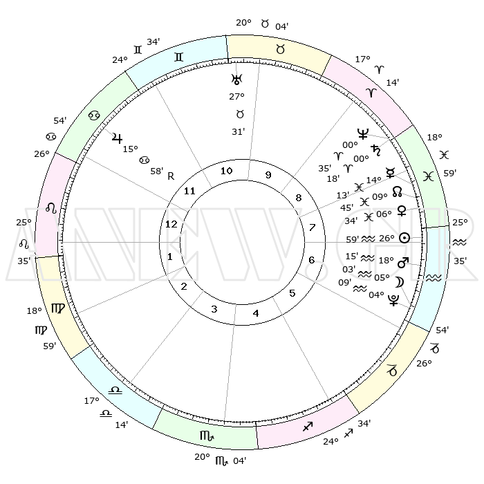 | | ΘΕΣΕΙΣ ΠΛΑΝΗΤΩΝ ΑΣΤΡΟΛΟΓΙΚΟΥ ΧΑΡΤΗ ΤΗΣ ΣΤΙΓΜΗΣ ΑΥΤΗΣ | | | | Πλανήτης | Ζώδιο | Μοίρες | Δεκαήμ. | Σε οίκο | Απόκλιση | | Ακμές των οίκων | | Ηλιος | Υδροχόος | 26°55' | Τρίτο | 7 | 12 S 32 | | 1ος | 06°41' | Λέων | | Σελήνη | Υδροχόος | 04°14' | Πρώτο | 6 | 22 S 07 | | 2ος | 28°13' | Λέων | | Ερμής | Ιχθείς | 14°08' | Δεύτερο | 8 | 06 S 05 | | 3ος | 24°11' | Παρθένος | | Αφροδίτη | Ιχθείς | 06°29' | Πρώτο | 8 | 10 S 30 | | 4ος | 25°57' | Ζυγός | | Αρης | Υδροχόος | 18°12' | Δεύτερο | 7 | 16 S 24 | | 5ος | 01°45' | Τοξότης | | Δίας | Καρκίνος | 15°59'R | Δεύτερο | 12 | 22 N 48 | | 6ος | 06°23' | Αιγόκερως | | Κρόνος | Κριός | 00°17' | Πρώτο | 9 | 01 S 51 | | 7ος | 06°41' | Υδροχόος | | Ουρανός | Ταύρος | 27°31' | Τρίτο | 10 | 19 N 25 | | 8ος | 28°13' | Υδροχόος | | Ποσειδώνας | Κριός | 00°35' | Πρώτο | 9 | 00 S 58 | | 9ος | 24°11' | Ιχθείς | | Πλούτωνας | Υδροχόος | 04°09' | Πρώτο | 6 | 22 S 56 | | 10ος | 25°57' | Κριός | | Β. Δεσμός | Ιχθείς | 09°45' | Πρώτο | 8 | 07 S 55 | | 11ος | 01°45' | Δίδυμοι | | Ωροσκόπος | Λέων | 06°41' | Πρώτο | | | 12ος | 06°23' | Καρκίνος | | Μεσουράνημα | Κριός | 25°57' | Τρίτο | | | |