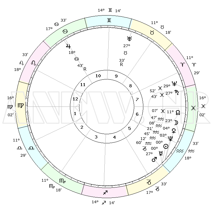 | | ΘΕΣΕΙΣ ΠΛΑΝΗΤΩΝ ΑΣΤΡΟΛΟΓΙΚΟΥ ΧΑΡΤΗ ΤΗΣ ΣΤΙΓΜΗΣ ΑΥΤΗΣ | | | | Πλανήτης | Ζώδιο | Μοίρες | Δεκαήμ. | Σε οίκο | Απόκλιση | | Ακμές των οίκων | | Ηλιος | Υδροχόος | 00°07' | Πρώτο | 1 | 20 S 07 | | 1ος | 10°47' | Αιγόκερως | | Σελήνη | Υδροχόος | 15°54' | Δεύτερο | 1 | 18 S 02 | | 2ος | 20°41' | Υδροχόος | | Ερμής | Αιγόκερως | 29°10' | Τρίτο | 1 | 22 S 18 | | 3ος | 00°58' | Κριός | | Αφροδίτη | Υδροχόος | 03°21' | Πρώτο | 1 | 20 S 30 | | 4ος | 02°60' | Ταύρος | | Αρης | Αιγόκερως | 27°31' | Τρίτο | 1 | 21 S 38 | | 5ος | 27°44' | Ταύρος | | Δίας | Καρκίνος | 18°48'R | Δεύτερο | 7 | 22 N 24 | | 6ος | 19°03' | Δίδυμοι | | Κρόνος | Ιχθείς | 27°40' | Τρίτο | 2 | 02 S 57 | | 7ος | 10°47' | Καρκίνος | | Ουρανός | Ταύρος | 27°33'R | Τρίτο | 4 | 19 N 25 | | 8ος | 20°41' | Λέων | | Ποσειδώνας | Ιχθείς | 29°51' | Τρίτο | 2 | 01 S 16 | | 9ος | 00°58' | Ζυγός | | Πλούτωνας | Υδροχόος | 03°19' | Πρώτο | 1 | 23 S 06 | | 10ος | 02°60' | Σκορπιός | | Β. Δεσμός | Ιχθείς | 11°09' | Δεύτερο | 2 | 07 S 23 | | 11ος | 27°44' | Σκορπιός | | Ωροσκόπος | Αιγόκερως | 10°47' | Δεύτερο | | | 12ος | 19°03' | Τοξότης | | Μεσουράνημα | Σκορπιός | 02°60' | Πρώτο | | | |