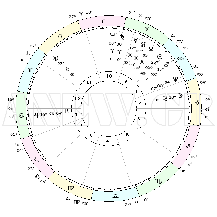 | | ΘΕΣΕΙΣ ΠΛΑΝΗΤΩΝ ΑΣΤΡΟΛΟΓΙΚΟΥ ΧΑΡΤΗ ΤΗΣ ΣΤΙΓΜΗΣ ΑΥΤΗΣ | | | | Πλανήτης | Ζώδιο | Μοίρες | Δεκαήμ. | Σε οίκο | Απόκλιση | | Ακμές των οίκων | | Ηλιος | Υδροχόος | 25°45' | Τρίτο | 9 | 12 S 56 | | 1ος | 18°26' | Δίδυμοι | | Σελήνη | Αιγόκερως | 19°48' | Δεύτερο | 8 | 25 S 55 | | 2ος | 10°16' | Καρκίνος | | Ερμής | Ιχθείς | 12°27' | Δεύτερο | 10 | 06 S 57 | | 3ος | 01°33' | Λέων | | Αφροδίτη | Ιχθείς | 05°02' | Πρώτο | 10 | 11 S 01 | | 4ος | 26°11' | Λέων | | Αρης | Υδροχόος | 17°17' | Δεύτερο | 9 | 16 S 41 | | 5ος | 28°04' | Παρθένος | | Δίας | Καρκίνος | 16°04'R | Δεύτερο | 2 | 22 N 47 | | 6ος | 08°20' | Σκορπιός | | Κρόνος | Κριός | 00°10' | Πρώτο | 11 | 01 S 54 | | 7ος | 18°26' | Τοξότης | | Ουρανός | Ταύρος | 27°30' | Τρίτο | 12 | 19 N 25 | | 8ος | 10°16' | Αιγόκερως | | Ποσειδώνας | Κριός | 00°33' | Πρώτο | 11 | 00 S 59 | | 9ος | 01°33' | Υδροχόος | | Πλούτωνας | Υδροχόος | 04°07' | Πρώτο | 9 | 22 S 57 | | 10ος | 26°11' | Υδροχόος | | Β. Δεσμός | Ιχθείς | 09°49' | Πρώτο | 10 | 07 S 53 | | 11ος | 28°04' | Ιχθείς | | Ωροσκόπος | Δίδυμοι | 18°26' | Δεύτερο | | | 12ος | 08°20' | Ταύρος | | Μεσουράνημα | Υδροχόος | 26°11' | Τρίτο | | | |