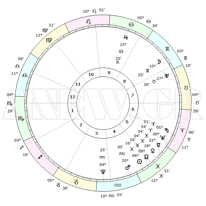 | | ΘΕΣΕΙΣ ΠΛΑΝΗΤΩΝ ΑΣΤΡΟΛΟΓΙΚΟΥ ΧΑΡΤΗ ΤΗΣ ΣΤΙΓΜΗΣ ΑΥΤΗΣ | | | | Πλανήτης | Ζώδιο | Μοίρες | Δεκαήμ. | Σε οίκο | Απόκλιση | | Ακμές των οίκων | | Ηλιος | Ιχθείς | 06°12' | Πρώτο | 5 | 09 S 14 | | 1ος | 16°14' | Ζυγός | | Σελήνη | Δίδυμοι | 10°01' | Δεύτερο | 8 | 27 N 10 | | 2ος | 13°51' | Σκορπιός | | Ερμής | Ιχθείς | 22°23' | Τρίτο | 6 | 00 S 46 | | 3ος | 14°57' | Τοξότης | | Αφροδίτη | Ιχθείς | 17°60' | Δεύτερο | 5 | 06 S 03 | | 4ος | 18°22' | Αιγόκερως | | Αρης | Υδροχόος | 25°27' | Τρίτο | 5 | 14 S 04 | | 5ος | 21°19' | Υδροχόος | | Δίας | Καρκίνος | 15°25'R | Δεύτερο | 9 | 22 N 53 | | 6ος | 20°60' | Ιχθείς | | Κρόνος | Κριός | 01°21' | Πρώτο | 6 | 01 S 26 | | 7ος | 16°14' | Κριός | | Ουρανός | Ταύρος | 27°39' | Τρίτο | 8 | 19 N 27 | | 8ος | 13°51' | Ταύρος | | Ποσειδώνας | Κριός | 00°54' | Πρώτο | 6 | 00 S 51 | | 9ος | 14°57' | Δίδυμοι | | Πλούτωνας | Υδροχόος | 04°25' | Πρώτο | 4 | 22 S 54 | | 10ος | 18°22' | Καρκίνος | | Β. Δεσμός | Ιχθείς | 09°16' | Πρώτο | 5 | 08 S 06 | | 11ος | 21°19' | Λέων | | Ωροσκόπος | Ζυγός | 16°14' | Δεύτερο | | | 12ος | 20°60' | Παρθένος | | Μεσουράνημα | Καρκίνος | 18°22' | Δεύτερο | | | |