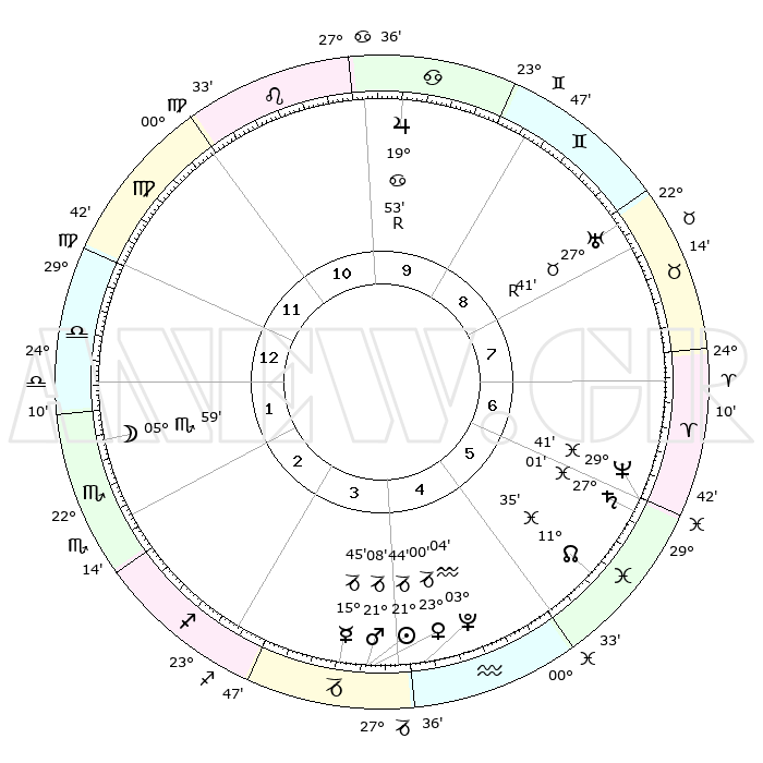 | | ΘΕΣΕΙΣ ΠΛΑΝΗΤΩΝ ΑΣΤΡΟΛΟΓΙΚΟΥ ΧΑΡΤΗ ΤΗΣ ΣΤΙΓΜΗΣ ΑΥΤΗΣ | | | | Πλανήτης | Ζώδιο | Μοίρες | Δεκαήμ. | Σε οίκο | Απόκλιση | | Ακμές των οίκων | | Ηλιος | Αιγόκερως | 21°31' | Τρίτο | 5 | 21 S 43 | | 1ος | 23°03' | Λέων | | Σελήνη | Σκορπιός | 03°30' | Πρώτο | 3 | 16 S 32 | | 2ος | 16°10' | Παρθένος | | Ερμής | Αιγόκερως | 15°25' | Δεύτερο | 5 | 24 S 06 | | 3ος | 14°09' | Ζυγός | | Αφροδίτη | Αιγόκερως | 22°44' | Τρίτο | 5 | 22 S 23 | | 4ος | 16°56' | Σκορπιός | | Αρης | Αιγόκερως | 20°58' | Τρίτο | 5 | 22 S 44 | | 5ος | 21°37' | Τοξότης | | Δίας | Καρκίνος | 19°55'R | Δεύτερο | 11 | 22 N 13 | | 6ος | 24°12' | Αιγόκερως | | Κρόνος | Ιχθείς | 26°60' | Τρίτο | 8 | 03 S 14 | | 7ος | 23°03' | Υδροχόος | | Ουρανός | Ταύρος | 27°41'R | Τρίτο | 10 | 19 N 27 | | 8ος | 16°10' | Ιχθείς | | Ποσειδώνας | Ιχθείς | 29°40' | Τρίτο | 8 | 01 S 21 | | 9ος | 14°09' | Κριός | | Πλούτωνας | Υδροχόος | 03°03' | Πρώτο | 6 | 23 S 09 | | 10ος | 16°56' | Ταύρος | | Β. Δεσμός | Ιχθείς | 11°36' | Δεύτερο | 7 | 07 S 13 | | 11ος | 21°37' | Δίδυμοι | | Ωροσκόπος | Λέων | 23°03' | Τρίτο | | | 12ος | 24°12' | Καρκίνος | | Μεσουράνημα | Ταύρος | 16°56' | Δεύτερο | | | |