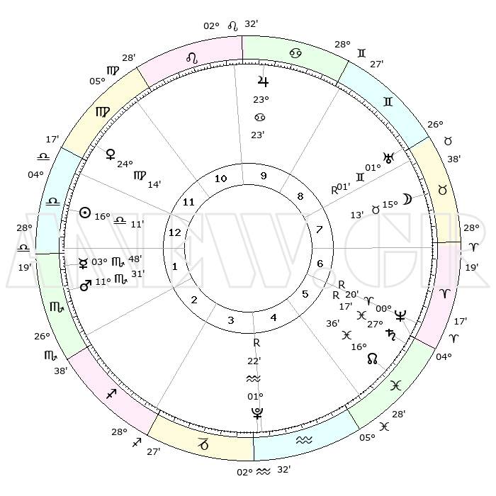 | ΘΕΣΕΙΣ ΠΛΑΝΗΤΩΝ ΑΣΤΡΟΛΟΓΙΚΟΥ ΧΑΡΤΗ ΤΗΣ ΣΤΙΓΜΗΣ ΑΥΤΗΣ | | Πλανήτης | Ζώδιο | Μοίρες | Δεκαήμ. | Σε οίκο | Απόκλιση | | Ακμές των οίκων | Ηλιος | Ζυγός | 16°04' | Δεύτερο | 1 | 06 S 19 | | 1ος | 25°03' | Παρθένος | Σελήνη | Ταύρος | 13°31' | Δεύτερο | 8 | 19 N 59 | | 2ος | 21°16' | Ζυγός | Ερμής | Σκορπιός | 03°38' | Πρώτο | 2 | 13 S 44 | | 3ος | 21°30' | Σκορπιός | Αφροδίτη | Παρθένος | 24°06' | Τρίτο | 12 | 03 N 40 | | 4ος | 24°26' | Τοξότης | Αρης | Σκορπιός | 11°26' | Δεύτερο | 2 | 15 S 25 | | 5ος | 27°30' | Αιγόκερως | Δίας | Καρκίνος | 23°23' | Τρίτο | 10 | 21 N 27 | | 6ος | 28°07' | Υδροχόος | Κρόνος | Ιχθείς | 27°17'R | Τρίτο | 7 | 03 S 23 | | 7ος | 25°03' | Ιχθείς | Ουρανός | Δίδυμοι | 01°01'R | Πρώτο | 9 | 20 N 09 | | 8ος | 21°16' | Κριός | Ποσειδώνας | Κριός | 00°20'R | Πρώτο | 7 | 01 S 08 | | 9ος | 21°30' | Ταύρος | Πλούτωνας | Υδροχόος | 01°22'R | Πρώτο | 5 | 23 S 32 | | 10ος | 24°26' | Δίδυμοι | Β. Δεσμός | Ιχθείς | 16°37' | Δεύτερο | 6 | 05 S 17 | | 11ος | 27°30' | Καρκίνος | Ωροσκόπος | Παρθένος | 25°03' | Τρίτο | | | 12ος | 28°07' | Λέων | Μεσουράνημα | Δίδυμοι | 24°26' | Τρίτο | | | |