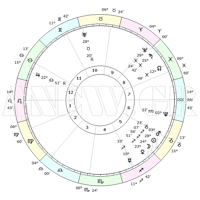 | | ΘΕΣΕΙΣ ΠΛΑΝΗΤΩΝ ΑΣΤΡΟΛΟΓΙΚΟΥ ΧΑΡΤΗ ΤΗΣ ΣΤΙΓΜΗΣ ΑΥΤΗΣ | | | | Πλανήτης | Ζώδιο | Μοίρες | Δεκαήμ. | Σε οίκο | Απόκλιση | | Ακμές των οίκων | | Ηλιος | Τοξότης | 28°03' | Τρίτο | 6 | 23 S 25 | | 1ος | 25°18' | Καρκίνος | | Σελήνη | Τοξότης | 24°08' | Τρίτο | 6 | 28 S 11 | | 2ος | 16°04' | Λέων | | Ερμής | Τοξότης | 10°27' | Δεύτερο | 5 | 21 S 05 | | 3ος | 10°29' | Παρθένος | | Αφροδίτη | Τοξότης | 23°45' | Τρίτο | 6 | 23 S 19 | | 4ος | 10°54' | Ζυγός | | Αρης | Αιγόκερως | 03°20' | Πρώτο | 6 | 24 S 12 | | 5ος | 16°59' | Σκορπιός | | Δίας | Καρκίνος | 22°52'R | Τρίτο | 12 | 21 N 42 | | 6ος | 23°29' | Τοξότης | | Κρόνος | Ιχθείς | 25°42' | Τρίτο | 9 | 03 S 49 | | 7ος | 25°18' | Αιγόκερως | | Ουρανός | Ταύρος | 28°20'R | Τρίτο | 11 | 19 N 35 | | 8ος | 16°04' | Υδροχόος | | Ποσειδώνας | Ιχθείς | 29°24' | Τρίτο | 9 | 01 S 28 | | 9ος | 10°29' | Ιχθείς | | Πλούτωνας | Υδροχόος | 02°22' | Πρώτο | 7 | 23 S 18 | | 10ος | 10°54' | Κριός | | Β. Δεσμός | Ιχθείς | 12°49' | Δεύτερο | 9 | 06 S 45 | | 11ος | 16°59' | Ταύρος | | Ωροσκόπος | Καρκίνος | 25°18' | Τρίτο | | | 12ος | 23°29' | Δίδυμοι | | Μεσουράνημα | Κριός | 10°54' | Δεύτερο | | | |