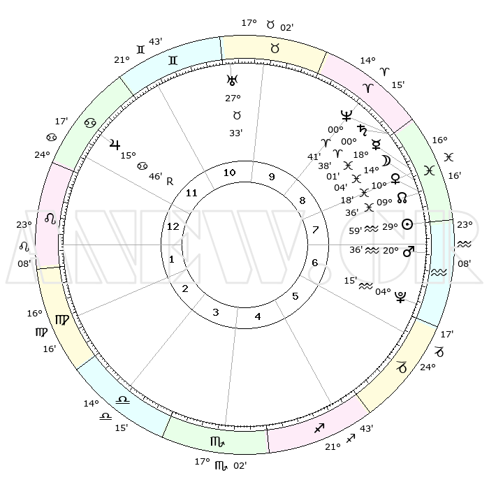 | | ΘΕΣΕΙΣ ΠΛΑΝΗΤΩΝ ΑΣΤΡΟΛΟΓΙΚΟΥ ΧΑΡΤΗ ΤΗΣ ΣΤΙΓΜΗΣ ΑΥΤΗΣ | | | | Πλανήτης | Ζώδιο | Μοίρες | Δεκαήμ. | Σε οίκο | Απόκλιση | | Ακμές των οίκων | | Ηλιος | Υδροχόος | 29°54' | Τρίτο | 8 | 11 S 30 | | 1ος | 27°31' | Καρκίνος | | Σελήνη | Ιχθείς | 12°53' | Δεύτερο | 8 | 06 S 23 | | 2ος | 18°24' | Λέων | | Ερμής | Ιχθείς | 17°55' | Δεύτερο | 9 | 03 S 57 | | 3ος | 13°07' | Παρθένος | | Αφροδίτη | Ιχθείς | 10°11' | Δεύτερο | 8 | 09 S 06 | | 4ος | 13°50' | Ζυγός | | Αρης | Υδροχόος | 20°31' | Τρίτο | 8 | 15 S 40 | | 5ος | 19°55' | Σκορπιός | | Δίας | Καρκίνος | 15°46'R | Δεύτερο | 12 | 22 N 50 | | 6ος | 26°02' | Τοξότης | | Κρόνος | Κριός | 00°37' | Πρώτο | 9 | 01 S 43 | | 7ος | 27°31' | Αιγόκερως | | Ουρανός | Ταύρος | 27°33' | Τρίτο | 11 | 19 N 26 | | 8ος | 18°24' | Υδροχόος | | Ποσειδώνας | Κριός | 00°41' | Πρώτο | 9 | 00 S 56 | | 9ος | 13°07' | Ιχθείς | | Πλούτωνας | Υδροχόος | 04°14' | Πρώτο | 7 | 22 S 55 | | 10ος | 13°50' | Κριός | | Β. Δεσμός | Ιχθείς | 09°36' | Πρώτο | 8 | 07 S 58 | | 11ος | 19°55' | Ταύρος | | Ωροσκόπος | Καρκίνος | 27°31' | Τρίτο | | | 12ος | 26°02' | Δίδυμοι | | Μεσουράνημα | Κριός | 13°50' | Δεύτερο | | | |