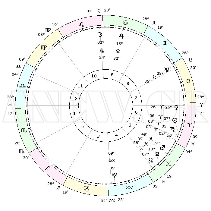 | | ΘΕΣΕΙΣ ΠΛΑΝΗΤΩΝ ΑΣΤΡΟΛΟΓΙΚΟΥ ΧΑΡΤΗ ΤΗΣ ΣΤΙΓΜΗΣ ΑΥΤΗΣ | | | | Πλανήτης | Ζώδιο | Μοίρες | Δεκαήμ. | Σε οίκο | Απόκλιση | | Ακμές των οίκων | | Ηλιος | Κριός | 07°02' | Πρώτο | 6 | 02 N 47 | | 1ος | 09°04' | Ζυγός | | Σελήνη | Λέων | 01°30' | Πρώτο | 10 | 22 N 54 | | 2ος | 06°15' | Σκορπιός | | Ερμής | Ιχθείς | 10°37' | Δεύτερο | 5 | 08 S 06 | | 3ος | 07°02' | Τοξότης | | Αφροδίτη | Κριός | 26°21' | Τρίτο | 7 | 09 N 36 | | 4ος | 10°12' | Αιγόκερως | | Αρης | Ιχθείς | 19°46' | Δεύτερο | 6 | 05 S 02 | | 5ος | 13°08' | Υδροχόος | | Δίας | Καρκίνος | 15°32' | Δεύτερο | 10 | 22 N 54 | | 6ος | 13°11' | Ιχθείς | | Κρόνος | Κριός | 05°08' | Πρώτο | 6 | 00 N 05 | | 7ος | 09°04' | Κριός | | Ουρανός | Ταύρος | 28°35' | Τρίτο | 8 | 19 N 40 | | 8ος | 06°15' | Ταύρος | | Ποσειδώνας | Κριός | 02°03' | Πρώτο | 6 | 00 S 23 | | 9ος | 07°02' | Δίδυμοι | | Πλούτωνας | Υδροχόος | 05°09' | Πρώτο | 4 | 22 S 48 | | 10ος | 10°12' | Καρκίνος | | Β. Δεσμός | Ιχθείς | 07°38' | Πρώτο | 5 | 08 S 42 | | 11ος | 13°08' | Λέων | | Ωροσκόπος | Ζυγός | 09°04' | Πρώτο | | | 12ος | 13°11' | Παρθένος | | Μεσουράνημα | Καρκίνος | 10°12' | Δεύτερο | | | |