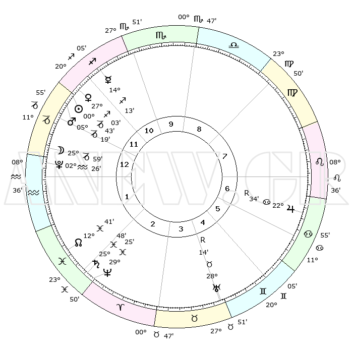 | | ΘΕΣΕΙΣ ΠΛΑΝΗΤΩΝ ΑΣΤΡΟΛΟΓΙΚΟΥ ΧΑΡΤΗ ΤΗΣ ΣΤΙΓΜΗΣ ΑΥΤΗΣ | | | | Πλανήτης | Ζώδιο | Μοίρες | Δεκαήμ. | Σε οίκο | Απόκλιση | | Ακμές των οίκων | | Ηλιος | Αιγόκερως | 00°39' | Πρώτο | 12 | 23 S 26 | | 1ος | 09°32' | Αιγόκερως | | Σελήνη | Αιγόκερως | 25°06' | Τρίτο | 1 | 24 S 42 | | 2ος | 19°07' | Υδροχόος | | Ερμής | Τοξότης | 14°07' | Δεύτερο | 11 | 21 S 53 | | 3ος | 29°25' | Ιχθείς | | Αφροδίτη | Τοξότης | 26°58' | Τρίτο | 12 | 23 S 31 | | 4ος | 01°41' | Ταύρος | | Αρης | Αιγόκερως | 05°16' | Πρώτο | 12 | 24 S 09 | | 5ος | 26°35' | Ταύρος | | Δίας | Καρκίνος | 22°34'R | Τρίτο | 7 | 21 N 45 | | 6ος | 17°56' | Δίδυμοι | | Κρόνος | Ιχθείς | 25°48' | Τρίτο | 2 | 03 S 47 | | 7ος | 09°32' | Καρκίνος | | Ουρανός | Ταύρος | 28°14'R | Τρίτο | 5 | 19 N 34 | | 8ος | 19°07' | Λέων | | Ποσειδώνας | Ιχθείς | 29°25' | Τρίτο | 2 | 01 S 28 | | 9ος | 29°25' | Παρθένος | | Πλούτωνας | Υδροχόος | 02°26' | Πρώτο | 1 | 23 S 17 | | 10ος | 01°41' | Σκορπιός | | Β. Δεσμός | Ιχθείς | 12°41' | Δεύτερο | 2 | 06 S 48 | | 11ος | 26°35' | Σκορπιός | | Ωροσκόπος | Αιγόκερως | 09°32' | Πρώτο | | | 12ος | 17°56' | Τοξότης | | Μεσουράνημα | Σκορπιός | 01°41' | Πρώτο | | | |