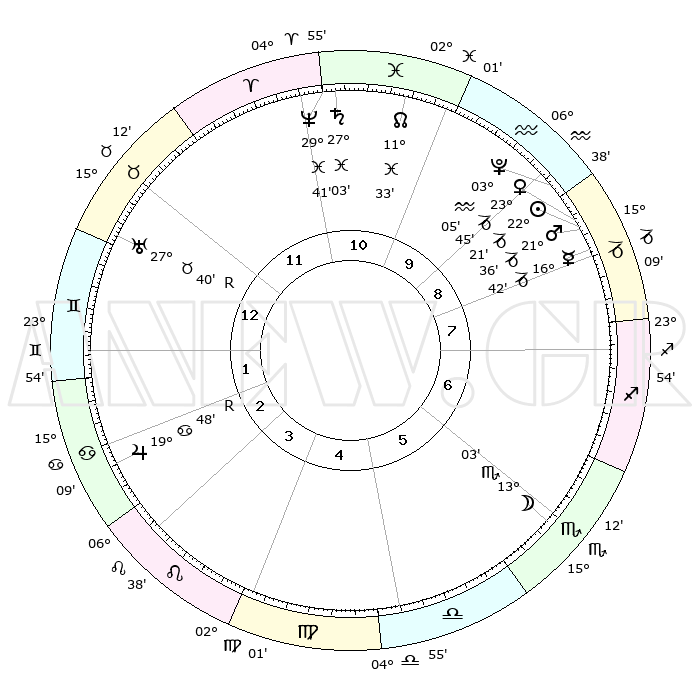 | | ΘΕΣΕΙΣ ΠΛΑΝΗΤΩΝ ΑΣΤΡΟΛΟΓΙΚΟΥ ΧΑΡΤΗ ΤΗΣ ΣΤΙΓΜΗΣ ΑΥΤΗΣ | | | | Πλανήτης | Ζώδιο | Μοίρες | Δεκαήμ. | Σε οίκο | Απόκλιση | | Ακμές των οίκων | | Ηλιος | Αιγόκερως | 22°12' | Τρίτο | 10 | 21 S 36 | | 1ος | 17°11' | Κριός | | Σελήνη | Σκορπιός | 11°17' | Δεύτερο | 7 | 19 S 28 | | 2ος | 22°58' | Ταύρος | | Ερμής | Αιγόκερως | 16°28' | Δεύτερο | 10 | 24 S 01 | | 3ος | 17°59' | Δίδυμοι | | Αφροδίτη | Αιγόκερως | 23°34' | Τρίτο | 10 | 22 S 16 | | 4ος | 09°45' | Καρκίνος | | Αρης | Αιγόκερως | 21°29' | Τρίτο | 10 | 22 S 40 | | 5ος | 03°03' | Λέων | | Δίας | Καρκίνος | 19°50'R | Δεύτερο | 4 | 22 N 14 | | 6ος | 03°20' | Παρθένος | | Κρόνος | Ιχθείς | 27°03' | Τρίτο | 12 | 03 S 13 | | 7ος | 17°11' | Ζυγός | | Ουρανός | Ταύρος | 27°41'R | Τρίτο | 2 | 19 N 27 | | 8ος | 22°58' | Σκορπιός | | Ποσειδώνας | Ιχθείς | 29°41' | Τρίτο | 12 | 01 S 20 | | 9ος | 17°59' | Τοξότης | | Πλούτωνας | Υδροχόος | 03°05' | Πρώτο | 11 | 23 S 09 | | 10ος | 09°45' | Αιγόκερως | | Β. Δεσμός | Ιχθείς | 11°34' | Δεύτερο | 12 | 07 S 13 | | 11ος | 03°03' | Υδροχόος | | Ωροσκόπος | Κριός | 17°11' | Δεύτερο | | | 12ος | 03°20' | Ιχθείς | | Μεσουράνημα | Αιγόκερως | 09°45' | Πρώτο | | | |