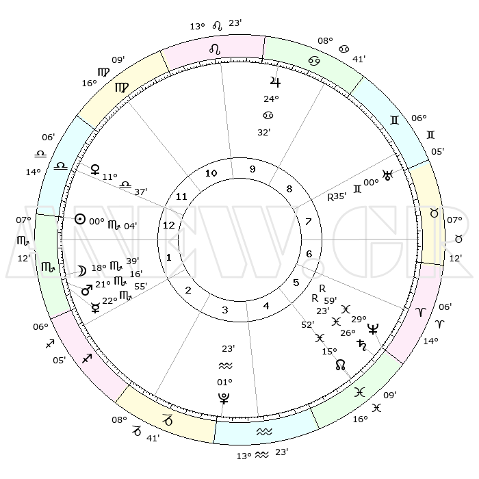 | ΘΕΣΕΙΣ ΠΛΑΝΗΤΩΝ ΑΣΤΡΟΛΟΓΙΚΟΥ ΧΑΡΤΗ ΤΗΣ ΣΤΙΓΜΗΣ ΑΥΤΗΣ | | Πλανήτης | Ζώδιο | Μοίρες | Δεκαήμ. | Σε οίκο | Απόκλιση | | Ακμές των οίκων | Ηλιος | Ζυγός | 29°35' | Τρίτο | 6 | 11 S 19 | | 1ος | 10°53' | Δίδυμοι | Σελήνη | Σκορπιός | 12°55' | Δεύτερο | 6 | 19 S 44 | | 2ος | 03°44' | Καρκίνος | Ερμής | Σκορπιός | 22°19' | Τρίτο | 6 | 20 S 43 | | 3ος | 24°57' | Καρκίνος | Αφροδίτη | Ζυγός | 11°01' | Δεύτερο | 5 | 02 S 57 | | 4ος | 18°41' | Λέων | Αρης | Σκορπιός | 20°55' | Τρίτο | 6 | 18 S 16 | | 5ος | 19°08' | Παρθένος | Δίας | Καρκίνος | 24°30' | Τρίτο | 2 | 21 N 17 | | 6ος | 28°57' | Ζυγός | Κρόνος | Ιχθείς | 26°24'R | Τρίτο | 11 | 03 S 43 | | 7ος | 10°53' | Τοξότης | Ουρανός | Δίδυμοι | 00°36'R | Πρώτο | 12 | 20 N 04 | | 8ος | 03°44' | Αιγόκερως | Ποσειδώνας | Ιχθείς | 29°59'R | Τρίτο | 11 | 01 S 16 | | 9ος | 24°57' | Αιγόκερως | Πλούτωνας | Υδροχόος | 01°23' | Πρώτο | 9 | 23 S 32 | | 10ος | 18°41' | Υδροχόος | Β. Δεσμός | Ιχθείς | 15°53' | Δεύτερο | 10 | 05 S 34 | | 11ος | 19°08' | Ιχθείς | Ωροσκόπος | Δίδυμοι | 10°53' | Δεύτερο | | | 12ος | 28°57' | Κριός | Μεσουράνημα | Υδροχόος | 18°41' | Δεύτερο | | | |
