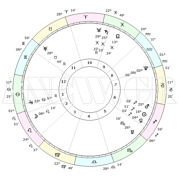 | | ΘΕΣΕΙΣ ΠΛΑΝΗΤΩΝ ΑΣΤΡΟΛΟΓΙΚΟΥ ΧΑΡΤΗ ΤΗΣ ΣΤΙΓΜΗΣ ΑΥΤΗΣ | | | | Πλανήτης | Ζώδιο | Μοίρες | Δεκαήμ. | Σε οίκο | Απόκλιση | | Ακμές των οίκων | | Ηλιος | Τοξότης | 16°48' | Δεύτερο | 6 | 22 S 47 | | 1ος | 27°19' | Δίδυμοι | | Σελήνη | Λέων | 07°37' | Πρώτο | 2 | 21 N 11 | | 2ος | 18°17' | Καρκίνος | | Ερμής | Σκορπιός | 26°13' | Τρίτο | 6 | 17 S 06 | | 3ος | 09°56' | Λέων | | Αφροδίτη | Τοξότης | 09°50' | Πρώτο | 6 | 21 S 31 | | 4ος | 05°49' | Παρθένος | | Αρης | Τοξότης | 25°00' | Τρίτο | 6 | 24 S 04 | | 5ος | 09°19' | Ζυγός | | Δίας | Καρκίνος | 23°58'R | Τρίτο | 2 | 21 N 29 | | 6ος | 19°29' | Σκορπιός | | Κρόνος | Ιχθείς | 25°23' | Τρίτο | 10 | 03 S 59 | | 7ος | 27°19' | Τοξότης | | Ουρανός | Ταύρος | 28°44'R | Τρίτο | 12 | 19 N 40 | | 8ος | 18°17' | Αιγόκερως | | Ποσειδώνας | Ιχθείς | 29°22'R | Τρίτο | 10 | 01 S 29 | | 9ος | 09°56' | Υδροχόος | | Πλούτωνας | Υδροχόος | 02°05' | Πρώτο | 8 | 23 S 22 | | 10ος | 05°49' | Ιχθείς | | Β. Δεσμός | Ιχθείς | 13°24' | Δεύτερο | 10 | 06 S 31 | | 11ος | 09°19' | Κριός | | Ωροσκόπος | Δίδυμοι | 27°19' | Τρίτο | | | 12ος | 19°29' | Ταύρος | | Μεσουράνημα | Ιχθείς | 05°49' | Πρώτο | | | |
