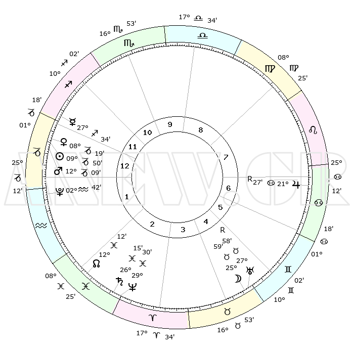 | | ΘΕΣΕΙΣ ΠΛΑΝΗΤΩΝ ΑΣΤΡΟΛΟΓΙΚΟΥ ΧΑΡΤΗ ΤΗΣ ΣΤΙΓΜΗΣ ΑΥΤΗΣ | | | | Πλανήτης | Ζώδιο | Μοίρες | Δεκαήμ. | Σε οίκο | Απόκλιση | | Ακμές των οίκων | | Ηλιος | Αιγόκερως | 09°45' | Πρώτο | 1 | 23 S 04 | | 1ος | 27°08' | Τοξότης | | Σελήνη | Ταύρος | 24°50' | Τρίτο | 5 | 23 N 41 | | 2ος | 03°34' | Υδροχόος | | Ερμής | Τοξότης | 27°27' | Τρίτο | 1 | 23 S 53 | | 3ος | 13°20' | Ιχθείς | | Αφροδίτη | Αιγόκερως | 08°13' | Πρώτο | 1 | 23 S 39 | | 4ος | 17°43' | Κριός | | Αρης | Αιγόκερως | 12°05' | Δεύτερο | 1 | 23 S 46 | | 5ος | 14°30' | Ταύρος | | Δίας | Καρκίνος | 21°27'R | Τρίτο | 7 | 21 N 57 | | 6ος | 06°30' | Δίδυμοι | | Κρόνος | Ιχθείς | 26°14' | Τρίτο | 3 | 03 S 34 | | 7ος | 27°08' | Δίδυμοι | | Ουρανός | Ταύρος | 27°58'R | Τρίτο | 5 | 19 N 30 | | 8ος | 03°34' | Λέων | | Ποσειδώνας | Ιχθείς | 29°30' | Τρίτο | 3 | 01 S 25 | | 9ος | 13°20' | Παρθένος | | Πλούτωνας | Υδροχόος | 02°42' | Πρώτο | 1 | 23 S 13 | | 10ος | 17°43' | Ζυγός | | Β. Δεσμός | Ιχθείς | 12°13' | Δεύτερο | 2 | 06 S 59 | | 11ος | 14°30' | Σκορπιός | | Ωροσκόπος | Τοξότης | 27°08' | Τρίτο | | | 12ος | 06°30' | Τοξότης | | Μεσουράνημα | Ζυγός | 17°43' | Δεύτερο | | | |