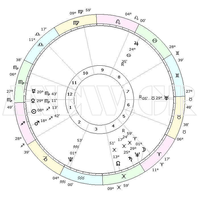 | | ΘΕΣΕΙΣ ΠΛΑΝΗΤΩΝ ΑΣΤΡΟΛΟΓΙΚΟΥ ΧΑΡΤΗ ΤΗΣ ΣΤΙΓΜΗΣ ΑΥΤΗΣ | | | | Πλανήτης | Ζώδιο | Μοίρες | Δεκαήμ. | Σε οίκο | Απόκλιση | | Ακμές των οίκων | | Ηλιος | Τοξότης | 08°10' | Πρώτο | 1 | 21 S 40 | | 1ος | 14°19' | Σκορπιός | | Σελήνη | Κριός | 01°20' | Πρώτο | 5 | 01 N 53 | | 2ος | 13°44' | Τοξότης | | Ερμής | Σκορπιός | 20°43' | Τρίτο | 1 | 15 S 27 | | 3ος | 17°08' | Αιγόκερως | | Αφροδίτη | Σκορπιός | 29°08' | Τρίτο | 1 | 19 S 14 | | 4ος | 22°22' | Υδροχόος | | Αρης | Τοξότης | 18°40' | Δεύτερο | 2 | 23 S 36 | | 5ος | 24°50' | Ιχθείς | | Δίας | Καρκίνος | 24°35'R | Τρίτο | 9 | 21 N 21 | | 6ος | 21°57' | Κριός | | Κρόνος | Ιχθείς | 25°17' | Τρίτο | 5 | 04 S 03 | | 7ος | 14°19' | Ταύρος | | Ουρανός | Ταύρος | 29°05'R | Τρίτο | 7 | 19 N 45 | | 8ος | 13°44' | Δίδυμοι | | Ποσειδώνας | Ιχθείς | 29°24'R | Τρίτο | 5 | 01 S 29 | | 9ος | 17°08' | Καρκίνος | | Πλούτωνας | Υδροχόος | 01°53' | Πρώτο | 3 | 23 S 24 | | 10ος | 22°22' | Λέων | | Β. Δεσμός | Ιχθείς | 13°51' | Δεύτερο | 4 | 06 S 21 | | 11ος | 24°50' | Παρθένος | | Ωροσκόπος | Σκορπιός | 14°19' | Δεύτερο | | | 12ος | 21°57' | Ζυγός | | Μεσουράνημα | Λέων | 22°22' | Τρίτο | | | |