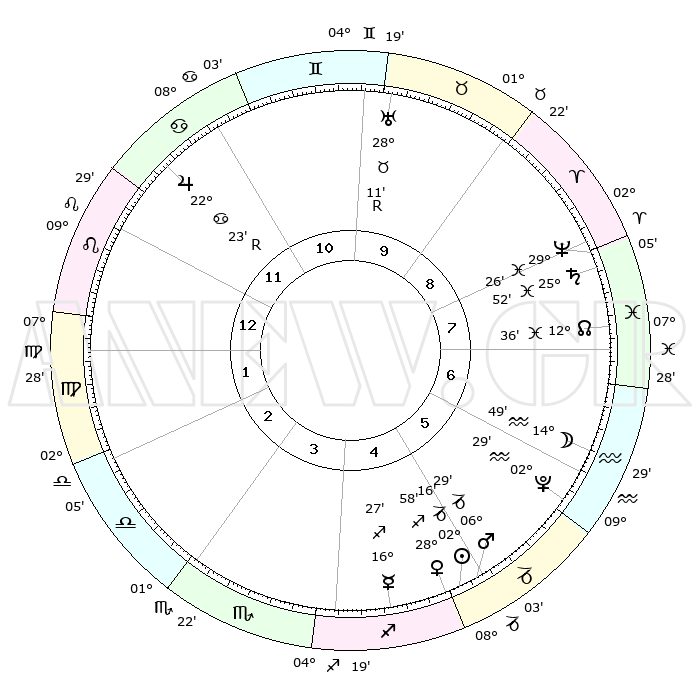 | | ΘΕΣΕΙΣ ΠΛΑΝΗΤΩΝ ΑΣΤΡΟΛΟΓΙΚΟΥ ΧΑΡΤΗ ΤΗΣ ΣΤΙΓΜΗΣ ΑΥΤΗΣ | | | | Πλανήτης | Ζώδιο | Μοίρες | Δεκαήμ. | Σε οίκο | Απόκλιση | | Ακμές των οίκων | | Ηλιος | Αιγόκερως | 02°11' | Πρώτο | 5 | 23 S 25 | | 1ος | 15°16' | Λέων | | Σελήνη | Υδροχόος | 13°52' | Δεύτερο | 6 | 18 S 54 | | 2ος | 07°36' | Παρθένος | | Ερμής | Τοξότης | 16°20' | Δεύτερο | 5 | 22 S 19 | | 3ος | 04°40' | Ζυγός | | Αφροδίτη | Τοξότης | 28°52' | Τρίτο | 5 | 23 S 37 | | 4ος | 07°06' | Σκορπιός | | Αρης | Αιγόκερως | 06°25' | Πρώτο | 5 | 24 S 07 | | 5ος | 12°22' | Τοξότης | | Δίας | Καρκίνος | 22°23'R | Τρίτο | 12 | 21 N 47 | | 6ος | 15°49' | Αιγόκερως | | Κρόνος | Ιχθείς | 25°52' | Τρίτο | 8 | 03 S 45 | | 7ος | 15°16' | Υδροχόος | | Ουρανός | Ταύρος | 28°11'R | Τρίτο | 10 | 19 N 33 | | 8ος | 07°36' | Ιχθείς | | Ποσειδώνας | Ιχθείς | 29°26' | Τρίτο | 8 | 01 S 27 | | 9ος | 04°40' | Κριός | | Πλούτωνας | Υδροχόος | 02°29' | Πρώτο | 6 | 23 S 16 | | 10ος | 07°06' | Ταύρος | | Β. Δεσμός | Ιχθείς | 12°36' | Δεύτερο | 8 | 06 S 50 | | 11ος | 12°22' | Δίδυμοι | | Ωροσκόπος | Λέων | 15°16' | Δεύτερο | | | 12ος | 15°49' | Καρκίνος | | Μεσουράνημα | Ταύρος | 07°06' | Πρώτο | | | |